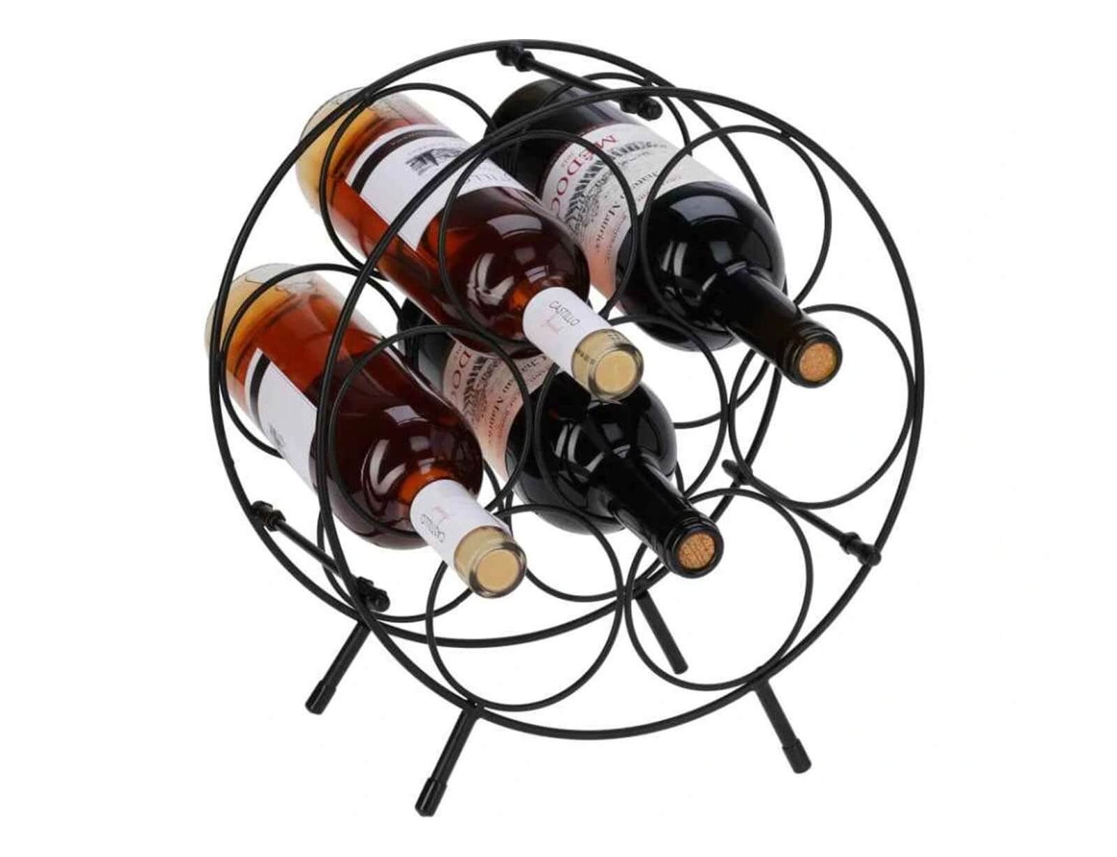Μια πρακτική θήκη για μπουκάλια από μέταλλο και ξύλο. Ιδανική για να κρατήσετε οργανωμένη την κάβα σας στο σαλόνι, την τραπεζαρία ή την κουζίνα. Η μαύρη επίστρωση πούδρας του εξασφαλίζει μεγάλη διάρκεια ζωής. Η σχάρα κρασιού είναι κατάλληλη για αποθήκευση έως και 7 φιαλών. Είναι κατασκευασμένη από μέταλλο υψηλής ποιότητας, γεγονός που την καθιστά ανθεκτική στο χρόνο και δεν σκουριάζει.
