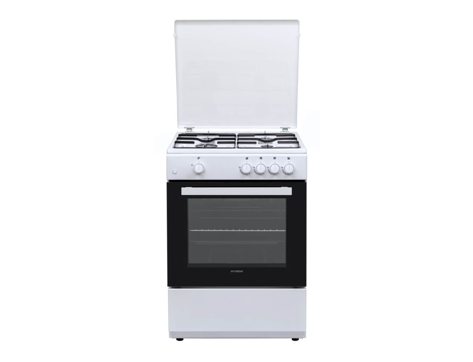 Κουζίνα Hyundai HCGC25V-72604G/W με φούρνο αερίου, μεγάλη χωρητικότητα φούρνου 75 λίτρα, ενεργειακή κλάση Α, 4 εστίες αερίου και 5 διαφορετικές εντάσεις φωτιάς.