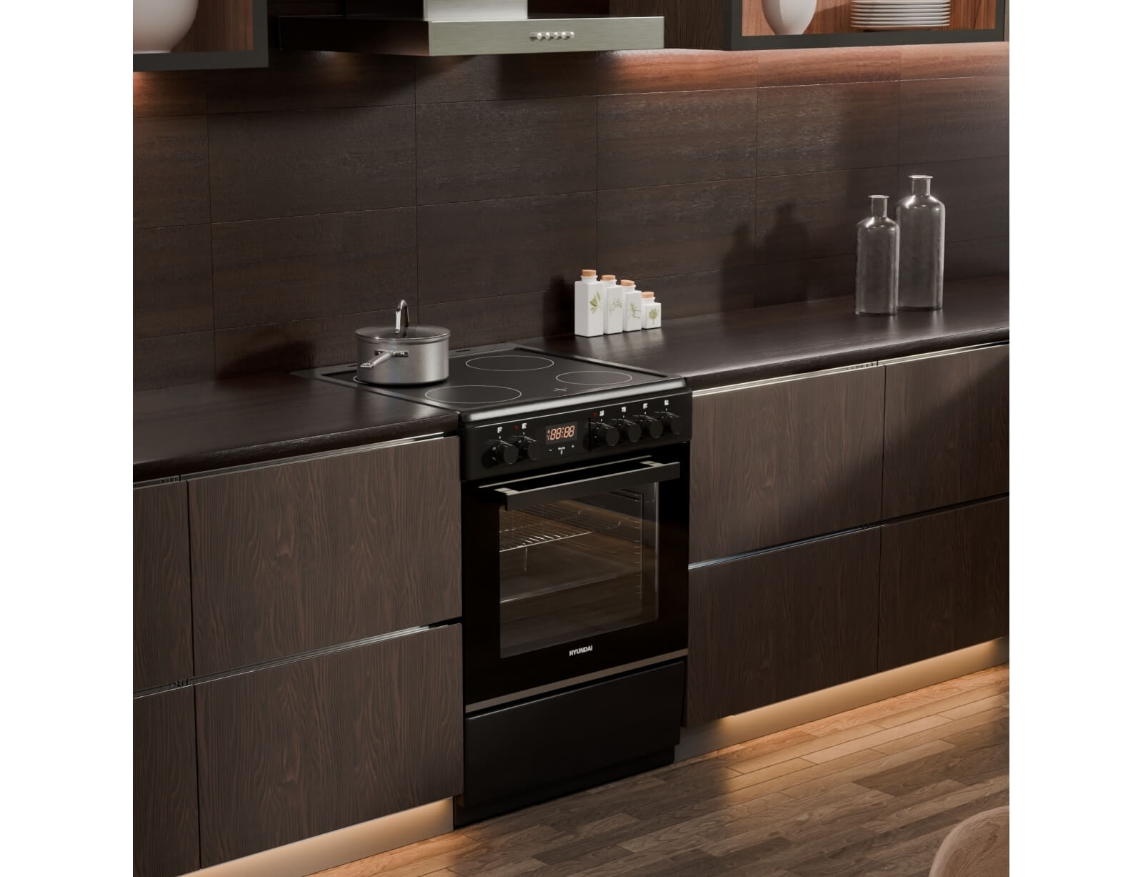 Εικόνα Κουζίνα Hyundai HCVC25V-7261V/BL με κεραμικές εστίες, χωρητικότητα φούρνου 69L, 5 λειτουργίες ψησίματος και ενεργειακή κλάση Α