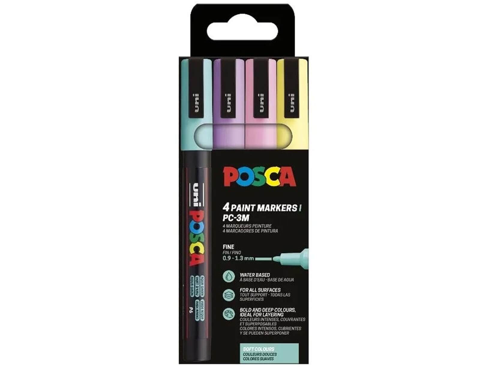 Μαρκαδόροι Σχεδίου Uni Posca PC-3M Soft με πάχος μύτης 0.9-1.3mm - 4 τεμάχια