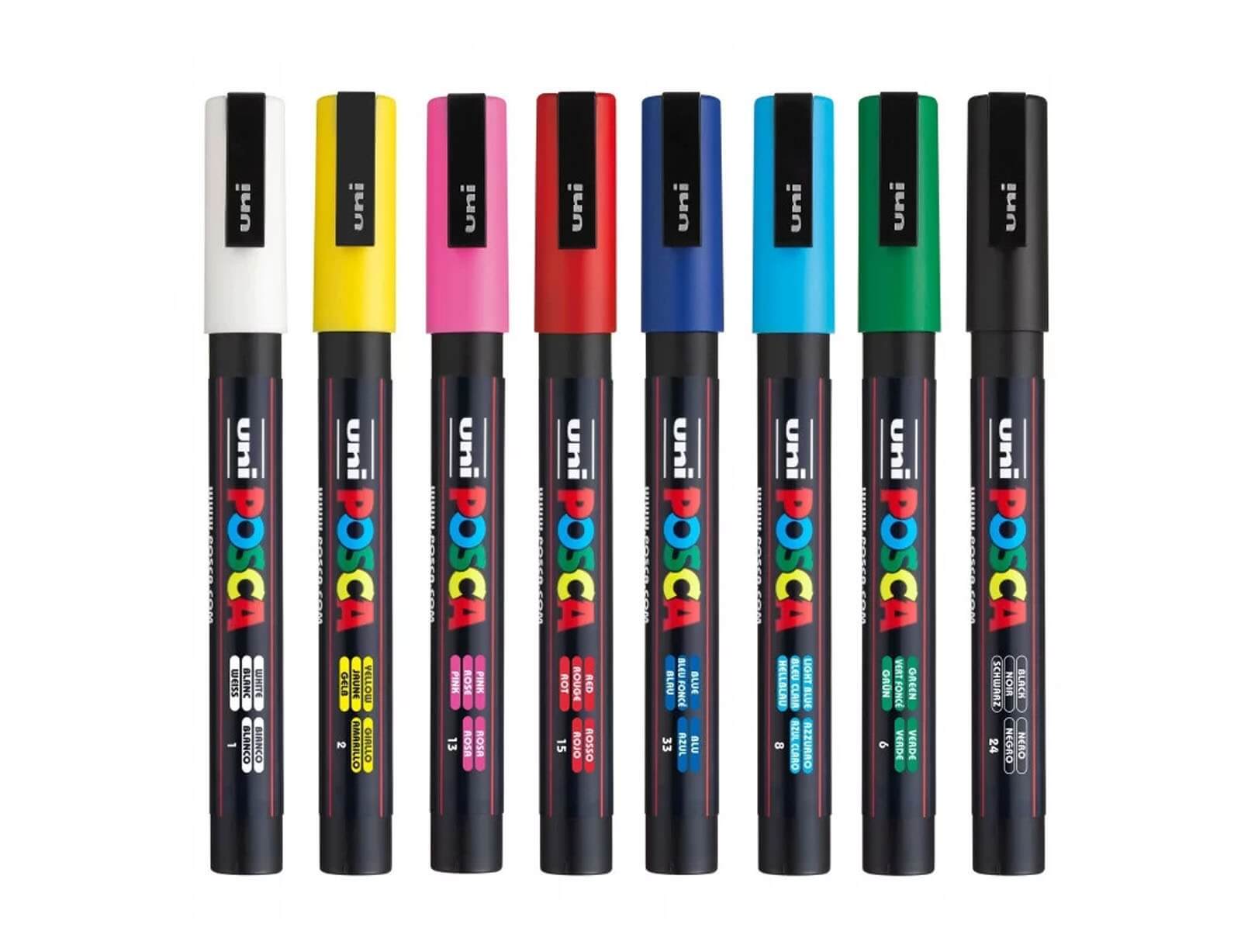 Μαρκαδόροι Σχεδίου Uni Posca PC-3M Basic με πάχος μύτης 0.9-1.3mm - 8 τεμάχια