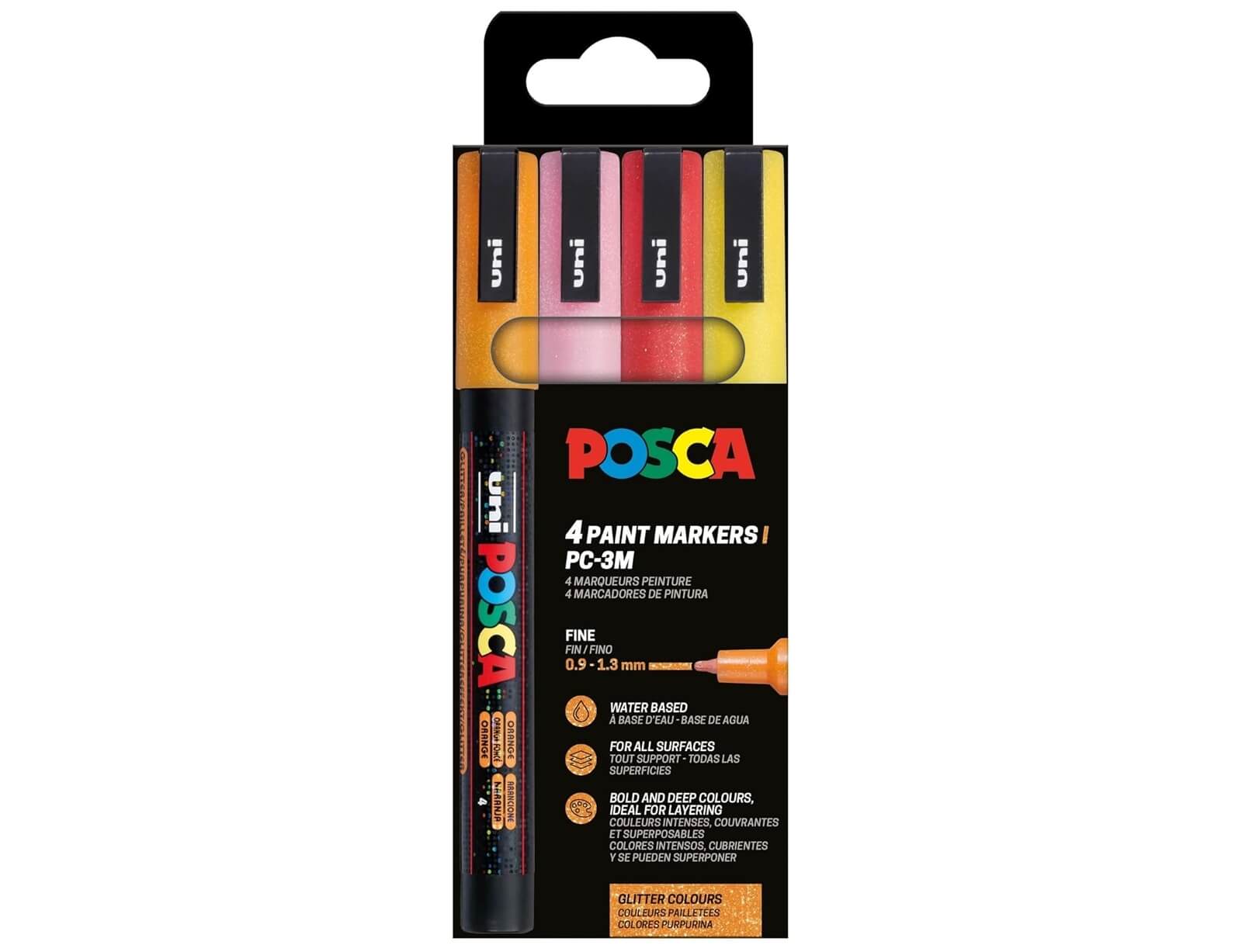 Μαρκαδόροι Σχεδίου Uni Posca PC-3ML Warm Sparkling με πάχος μύτης 0.9-1.3mm - 4 τεμάχια