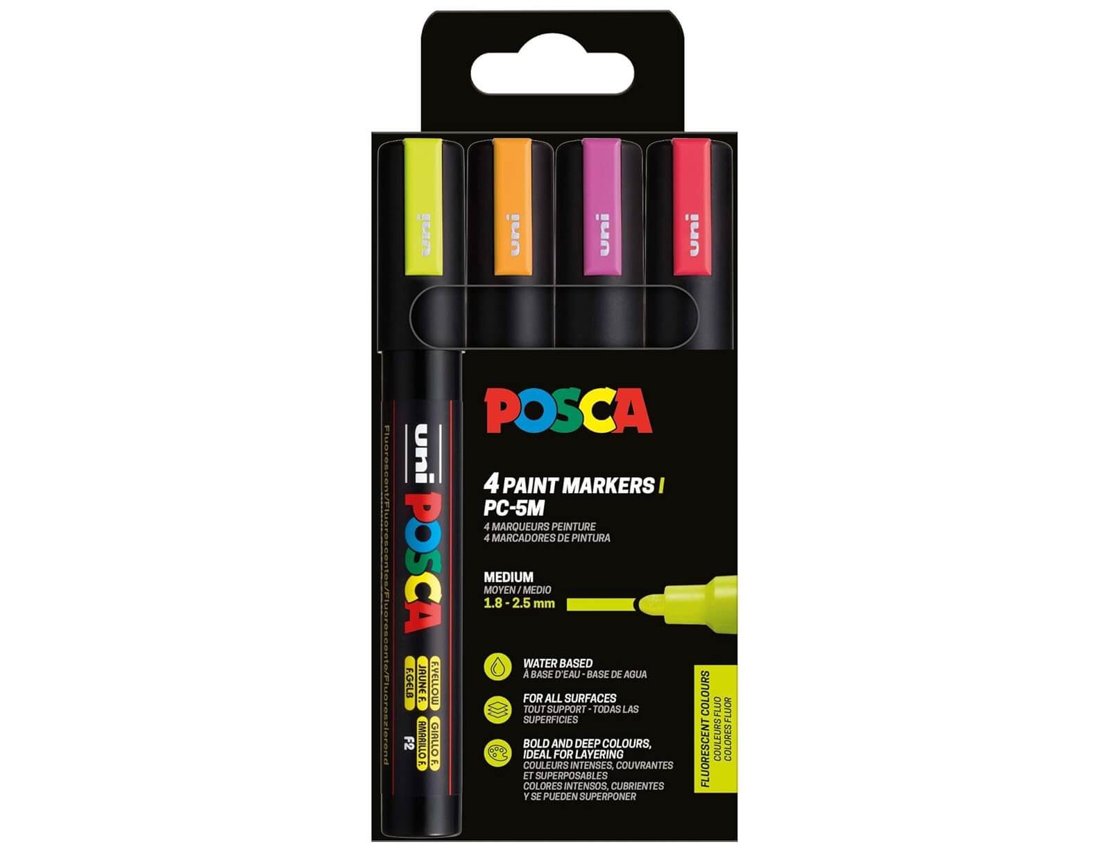 Μαρκαδόροι Σχεδίου Uni Posca PC-5M Neon Medium με πάχος μύτης 1.8-2.5mm - 4 τεμάχια