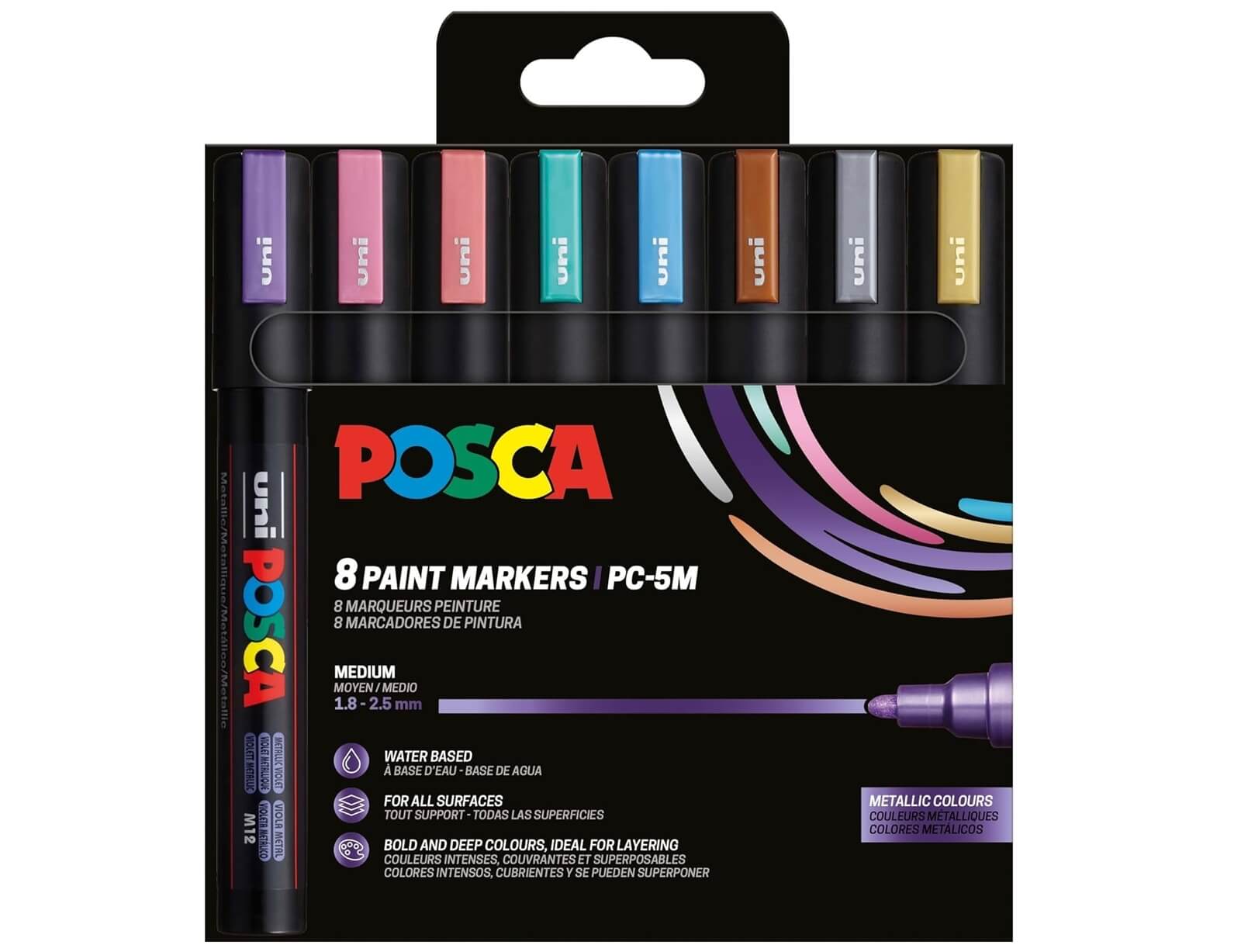 Μαρκαδόροι Σχεδίου Uni Posca PC-5M Metallic Medium με πάχος μύτης 1.8-2.5mm - 8 τεμάχια