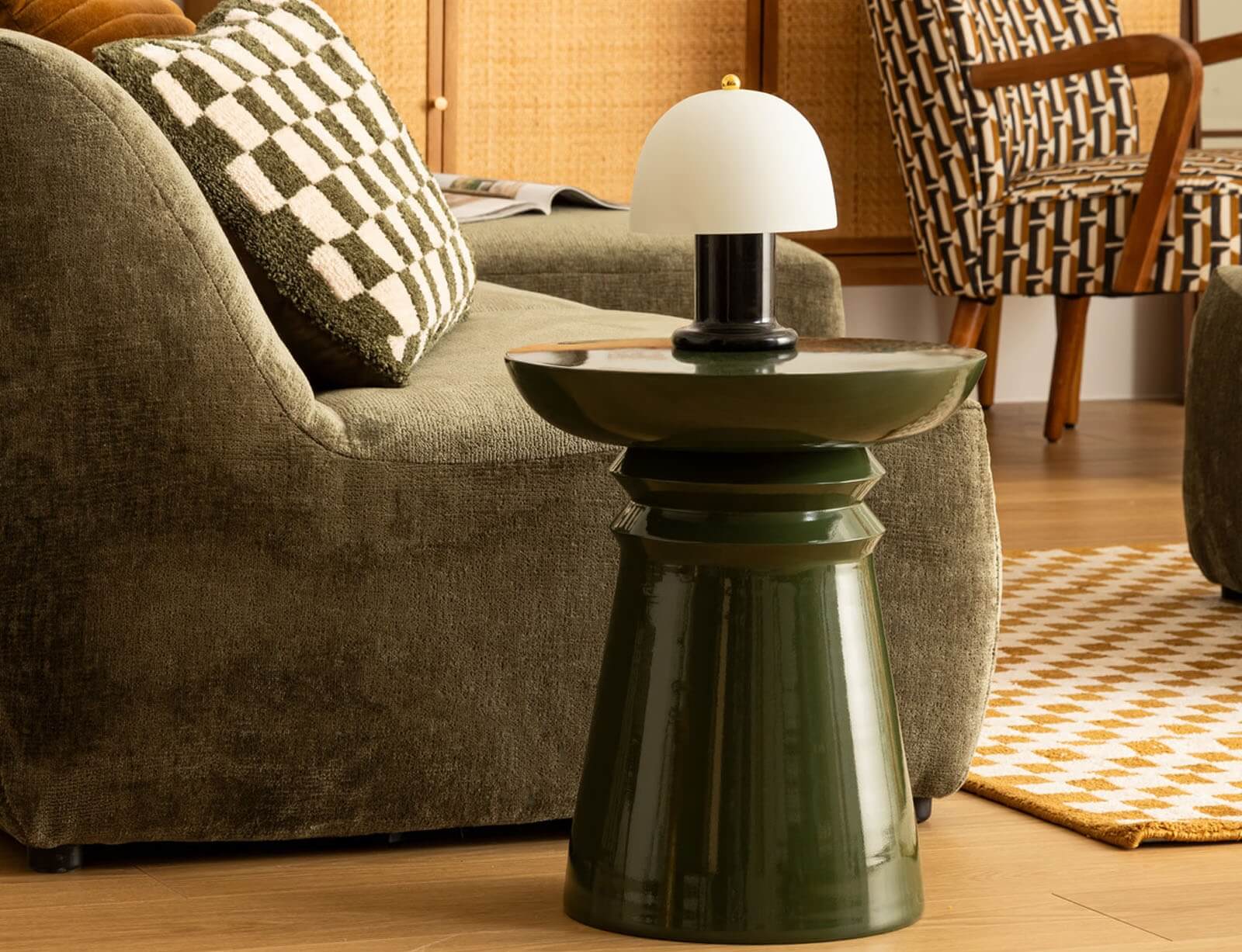 Αναβαθμίστε τη διακόσμηση του σαλονιού σας με το βοηθητικό τραπεζάκι Jaya από την Atmosphera. Με κομψό στρογγυλό σχεδιασμό, ταιριάζει ιδανικά σε μικρούς χώρους, προσφέροντας στυλ και πρακτικότητα. Η γυαλιστερή του επιφάνεια και το πράσινο χρώμα δημιουργούν ζωντάνια και ηρεμία στο περιβάλλον σας, αναδεικνύοντας τη διακόσμηση του χώρου, ενώ η σταθερή ατσάλινη κατασκευή προσφέρει αντοχή και μοντέρνα αισθητική.