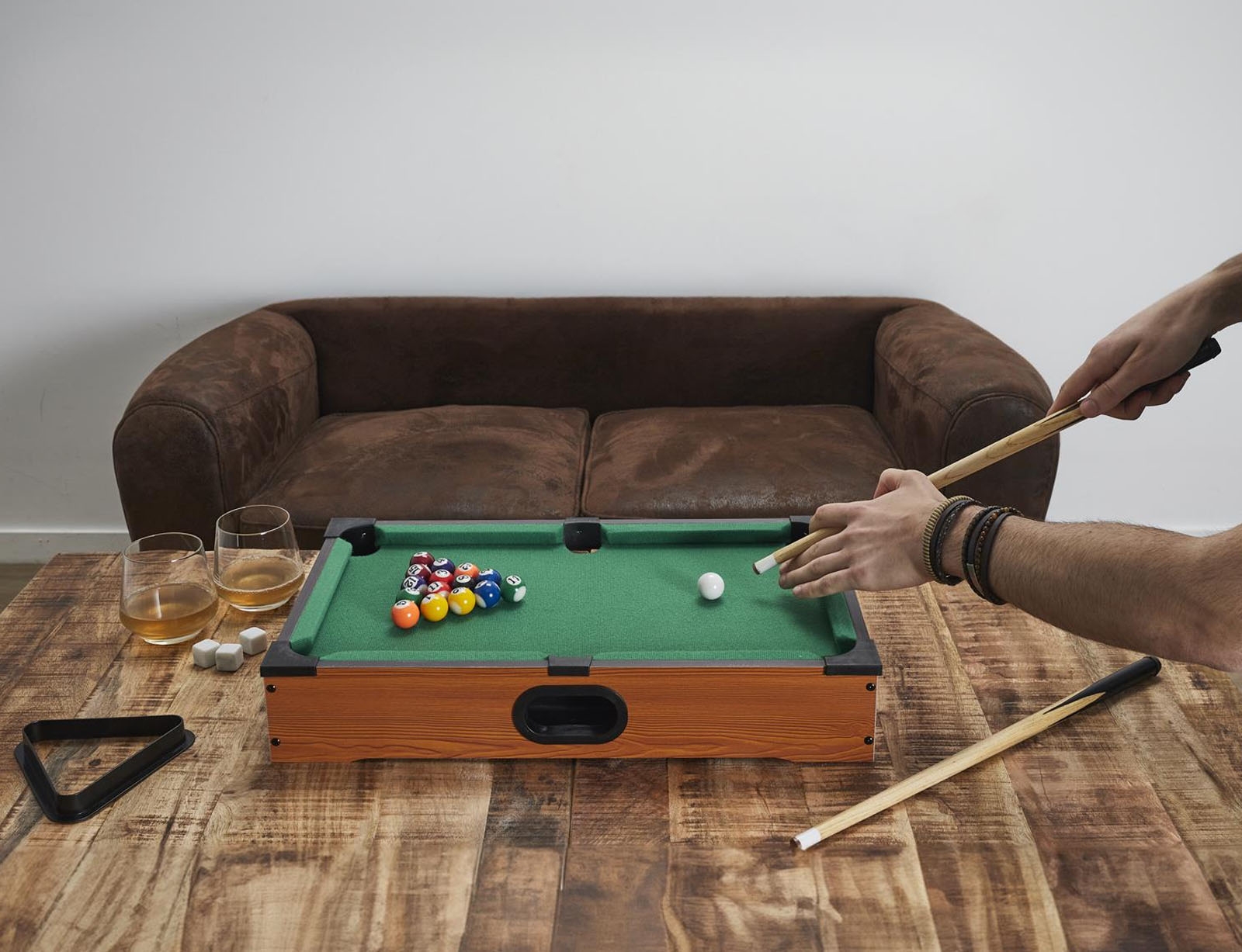 Ζήστε την απόλυτη εμπειρία μπιλιάρδου με ένα πλήρες σετ που περιλαμβάνει όλα όσα χρειάζεστε για να απολαύσετε ατελείωτες ώρες παιχνιδιού. Κατασκευασμένο από ανθεκτικά υλικά MDF, ABS και πολυεστέρα, το τραπέζι Atmosphera συνδυάζει στιβαρότητα και κομψότητα, προσφέροντας μια μοναδική εμπειρία παιχνιδιού που θα ενθουσιάσει όλη την οικογένεια και τους φίλους. Η επιφάνεια του τραπεζιού είναι σχεδιασμένη ώστε να εξασφαλίζει ομαλή και σταθερή κύλιση της μπάλας, ενώ η κομψή του εμφάνιση ταιριάζει απόλυτα τόσο σε οποιονδήποτε χώρο. Περιλαμβάνει ένα τρίγωνο για το στήσιμο της αρχικής διάταξης, ένα σετ 16 μπαλών, δύο στέκες μήκους 144 εκατοστών και δύο κιμωλίες για άψογο κράτημα και ακρίβεια στα χτυπήματα.