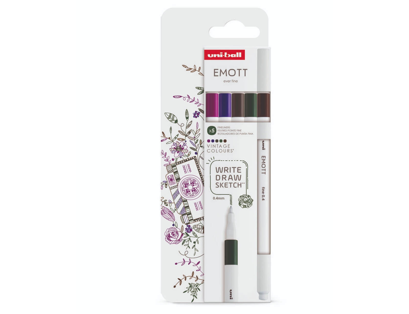 Ανακαλύψτε τη γοητεία του παρελθόντος με το σετ Uni-Ball Emott Vintage Colours, που προσφέρει 5 κλασικές και κομψές αποχρώσεις εμπνευσμένες από τις vintage τάσεις. Ιδανικό για ρετρό journaling, lettering και δημιουργικές σημειώσεις, αυτό το σετ φέρνει μία ζεστή, νοσταλγική αίσθηση σε κάθε γραμμή.Το σετ προσφέρει εξαιρετική ποιότητα γραφής με ακρίβεια 0,4mm και ανθεκτικό μελάνι που δεν ξεθωριάζει. Ο εργονομικός τετράγωνος σχεδιασμός αποτρέπει την κύλιση, ενώ το μοντέρνο λευκό σώμα προσθέτει μια κομψή αισθητική στο γραφείο ή το δημιουργικό σας περιβάλλον.