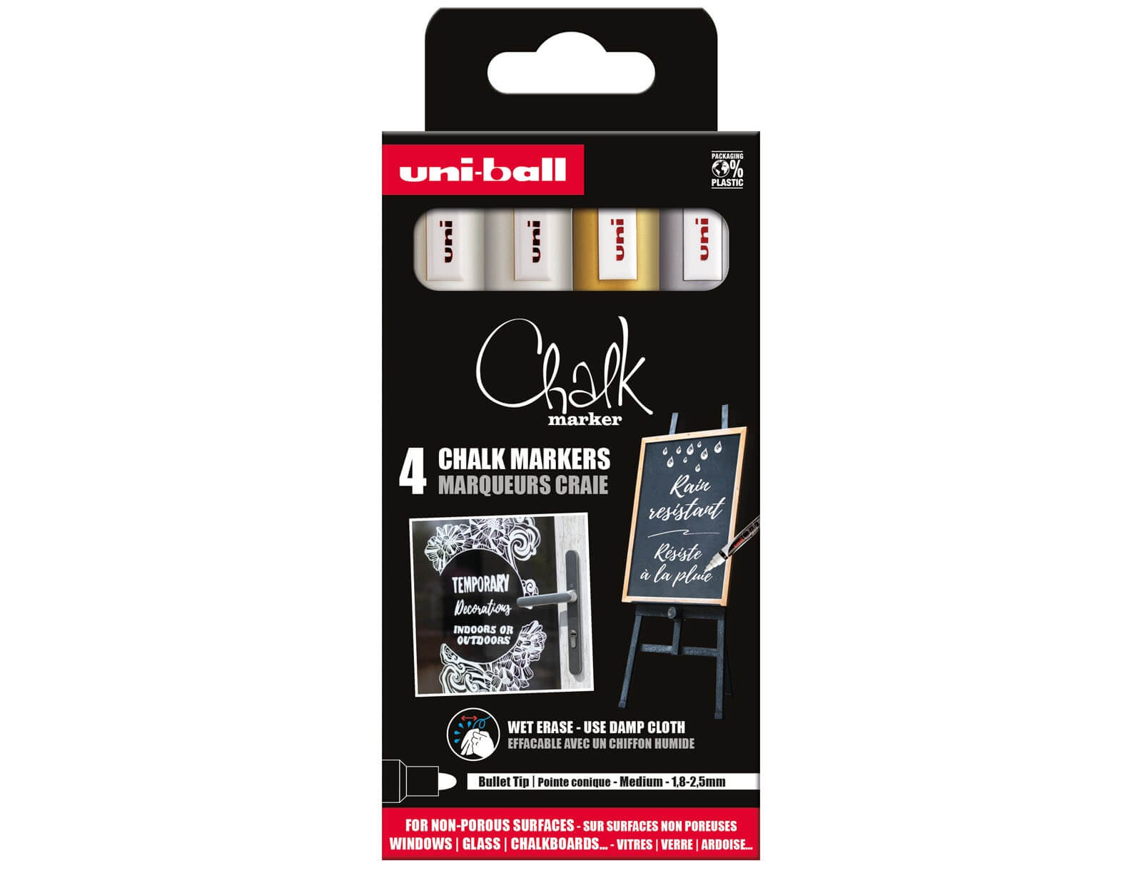 Μαρκαδόροι Υγρής Κιμωλίας PWE-5M Uni-Ball με πάχος μύτης 1.8-2.5 mm - 4 τεμάχια