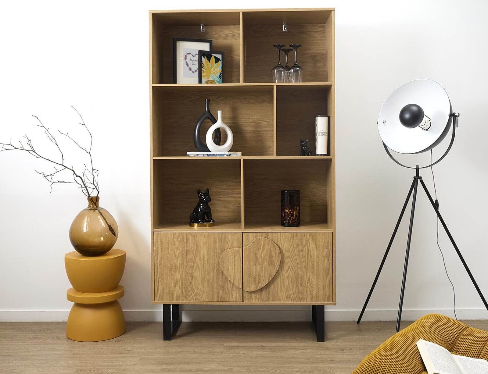 Η βιβλιοθήκη Calypso από τη Home Deco Factory είναι η ιδανική προσθήκη στο χώρο σας. Ο μοντέρνος σχεδιασμός και η ανθεκτική της κατασκεή θα φιλοξενήσει με μεγάλη άνεση τα βιβλία και τα διακοσμητικά σας. Φτιάξε τις δικές σας συνθέσεις με διακοσμητικά, γλαστράκια, βιβλία και ότι άλλο επιθυμείτε και δώστε μια ξεχωριστή νότα στο χώρο σας. Διαθέτει 6 ράφια και 2 συρτάρια. Είναι κατασκευασμένη από MDF και η βάση της από μέταλλο.