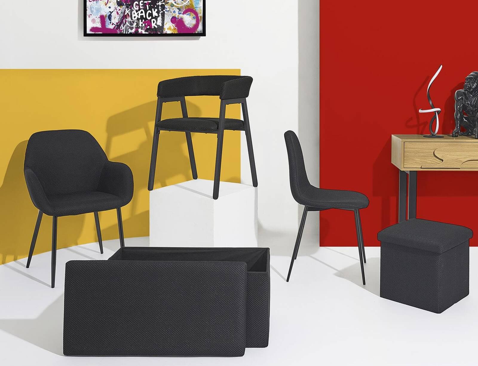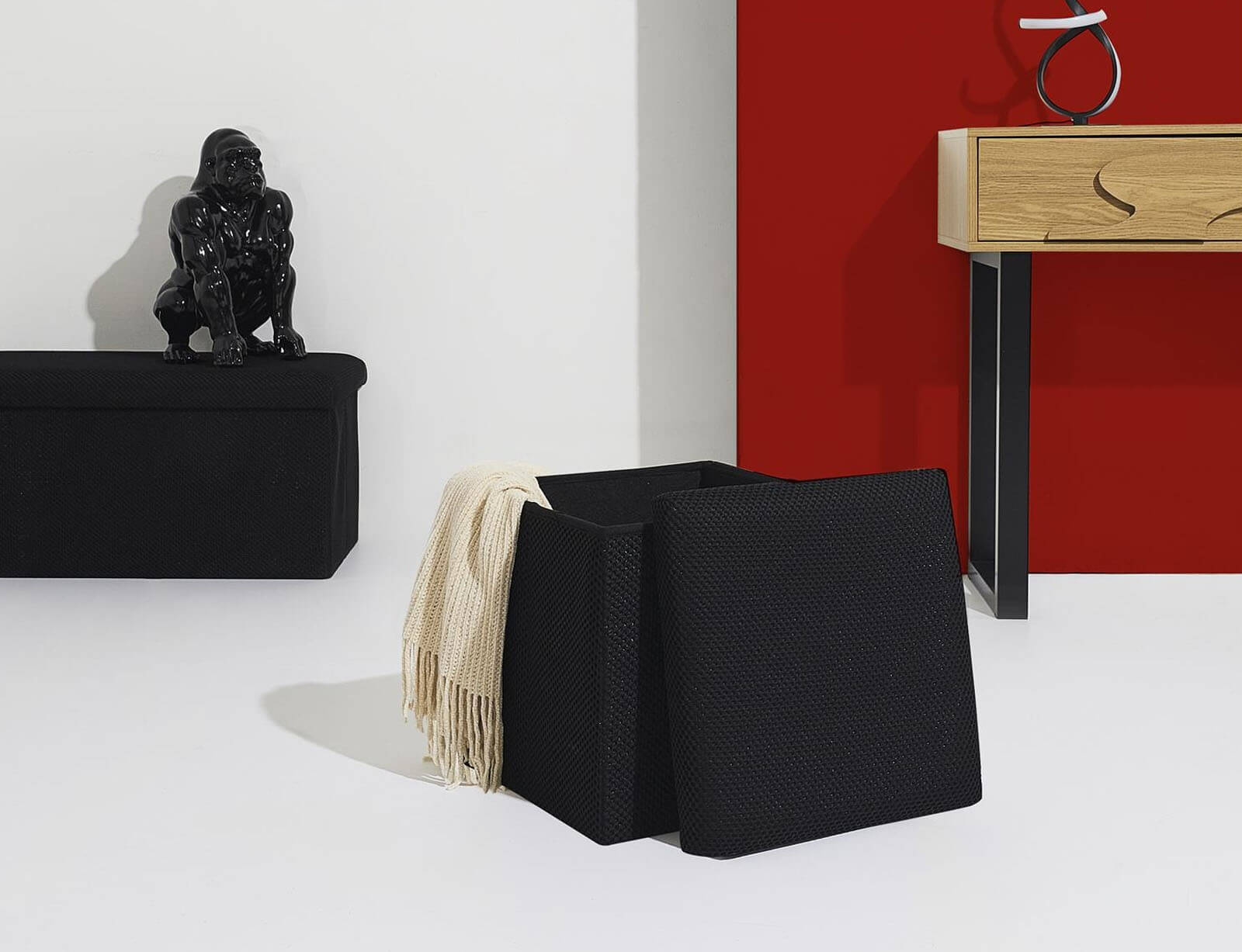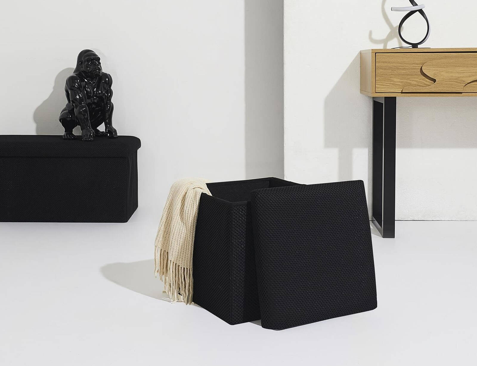 Σκαμπό Atom Home Deco Factory με αποθηκευτικό χώρο και διαστάσεις 38x38x38cm - Black