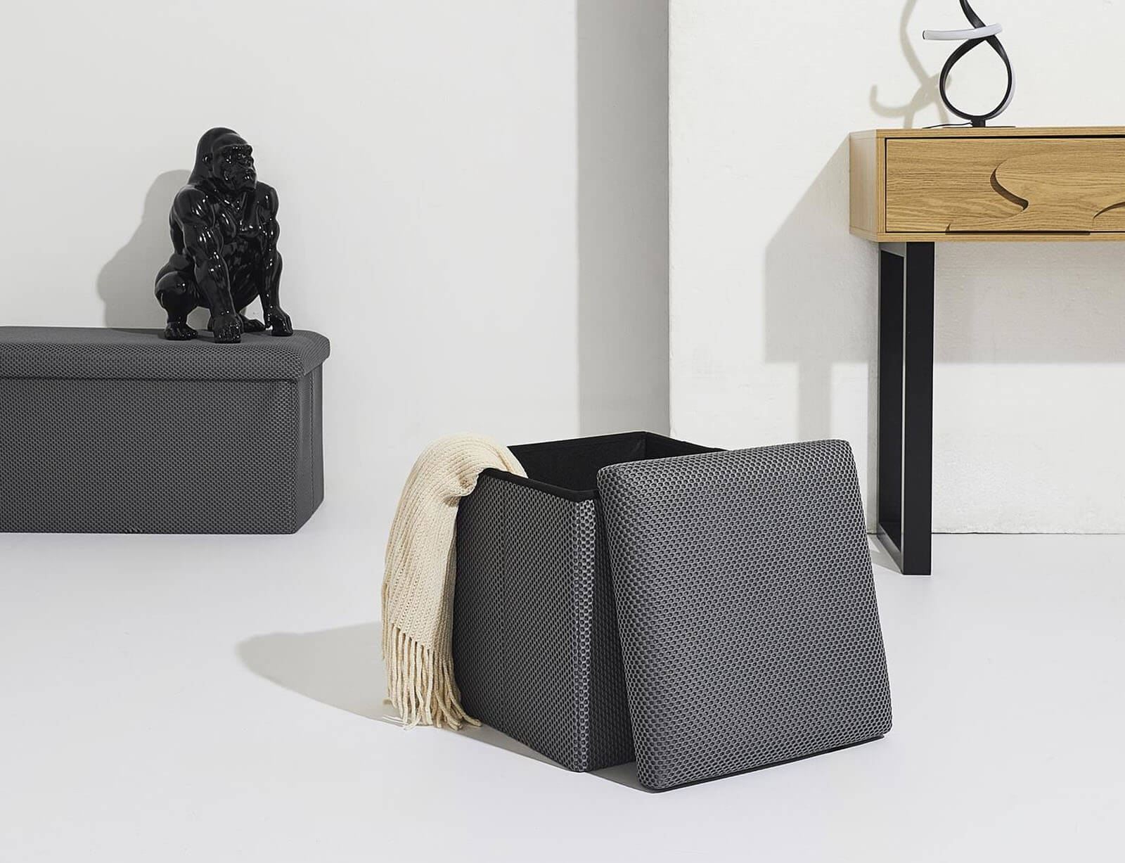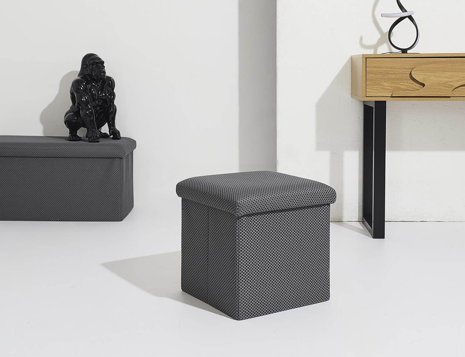 Σκαμπό Atom Home Deco Factory με αποθηκευτικό χώρο και διαστάσεις 38x38x38cm - Grey