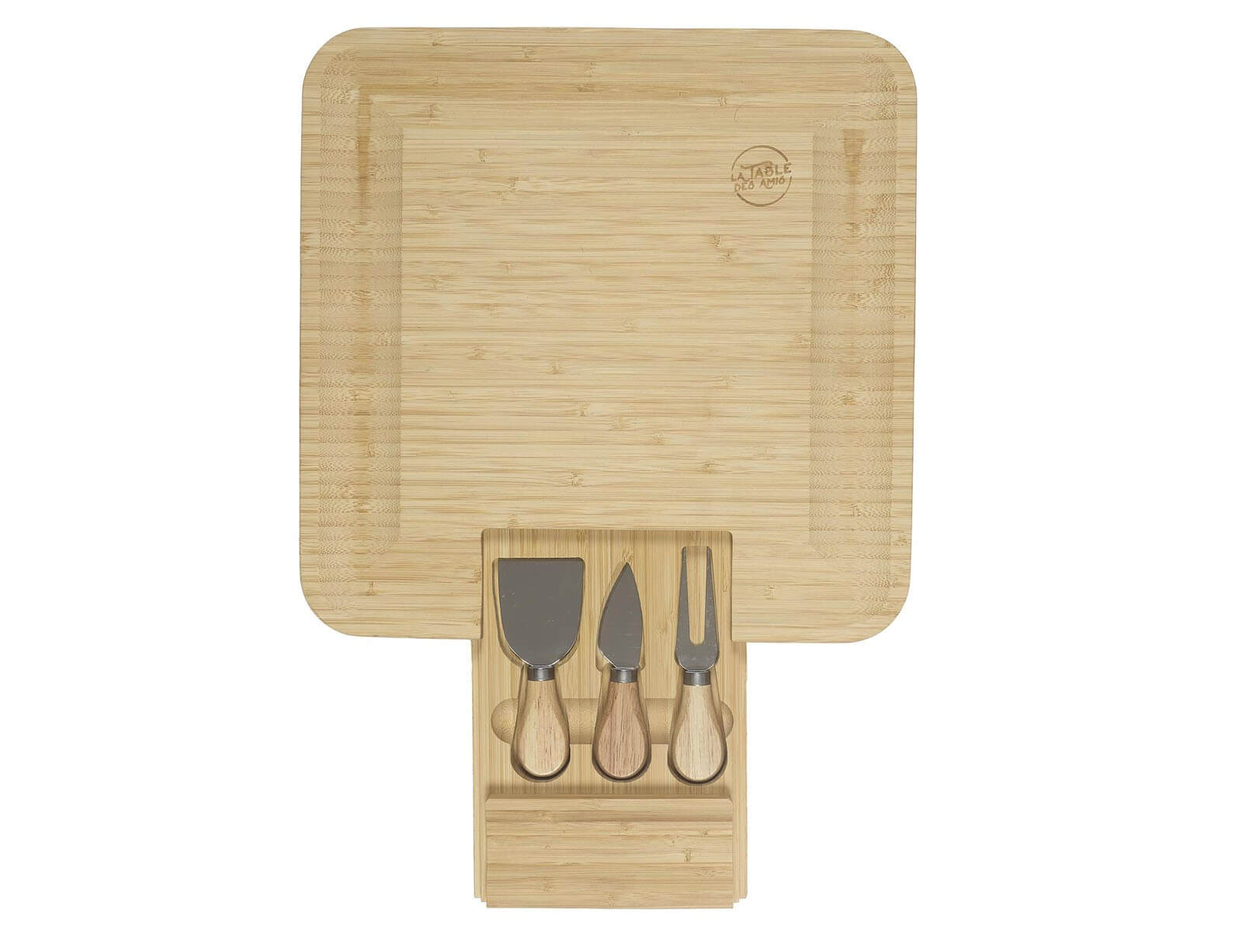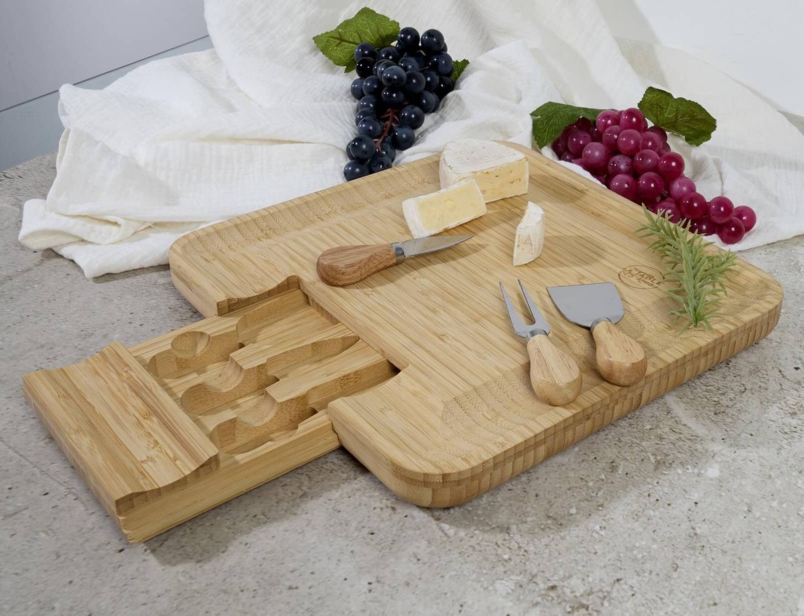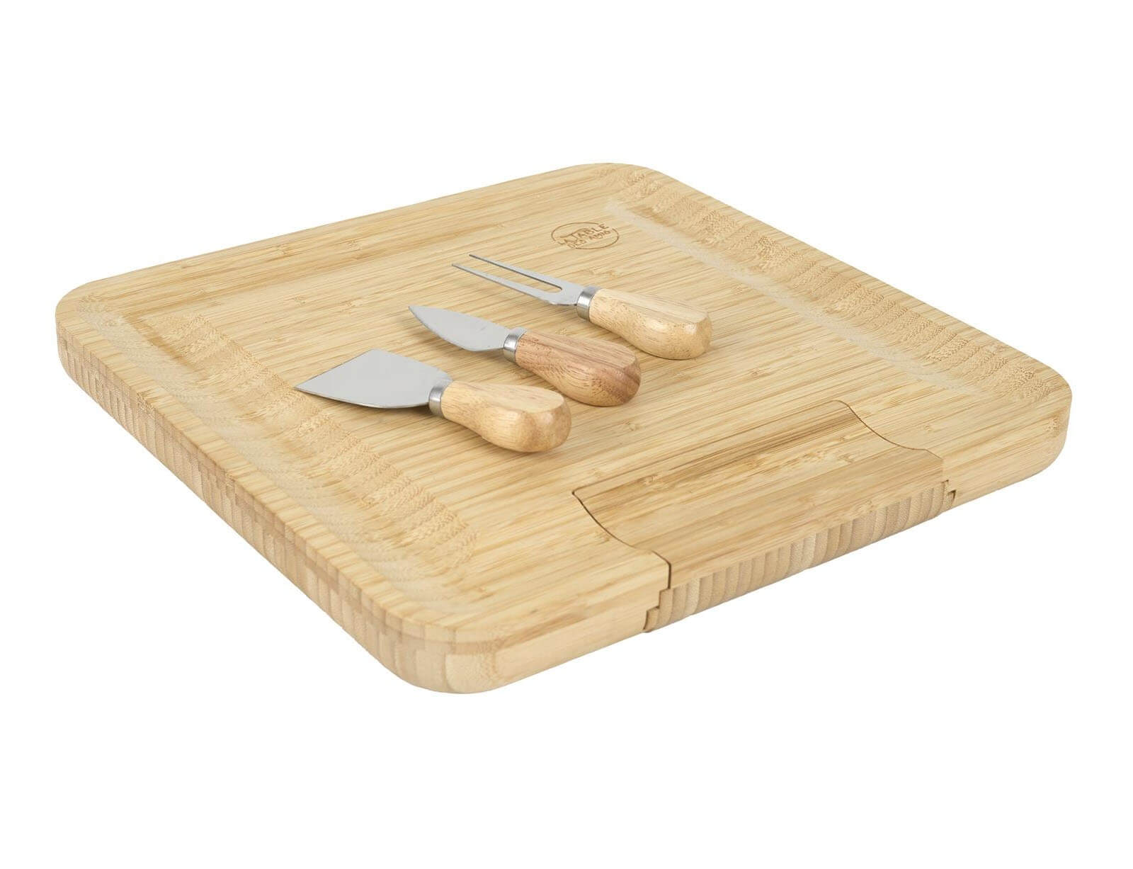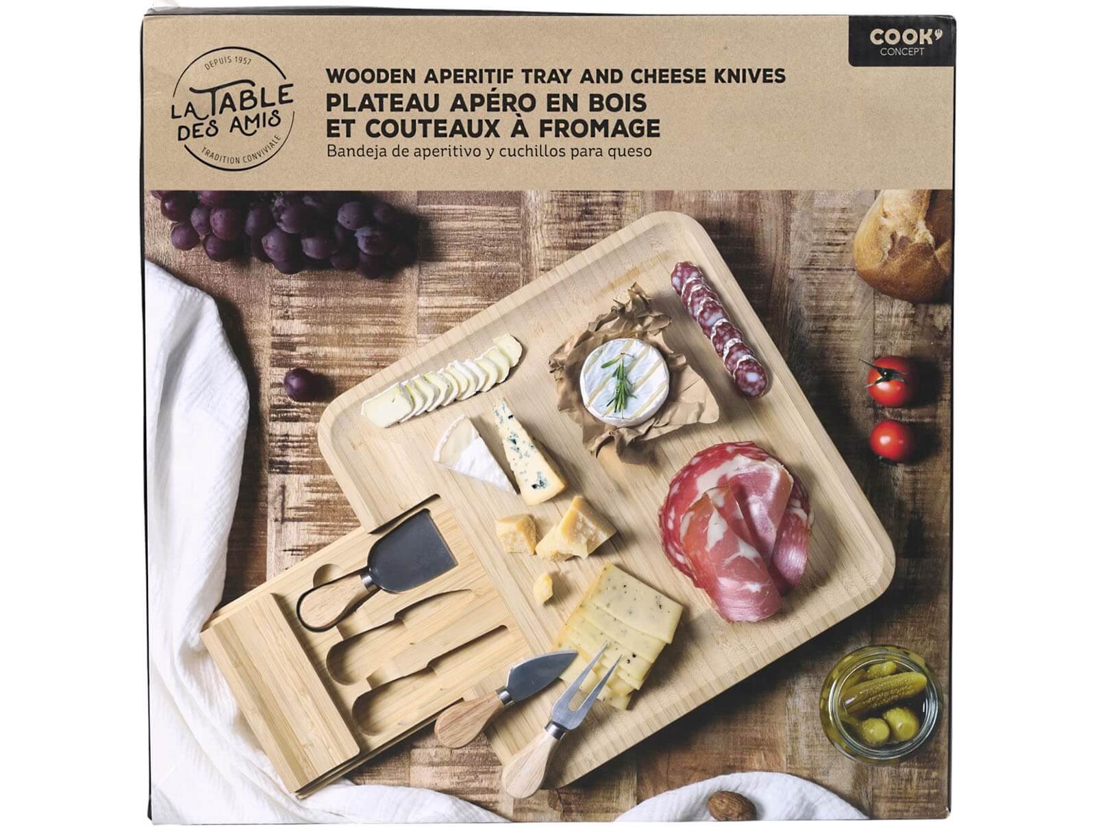 Πλατώ σερβιρίσματος τυριών Cook Concept με 3 μαχαίρια τυριού, συρτάρι αποθήκευσης και διαστάσεις 33x33x3cm
