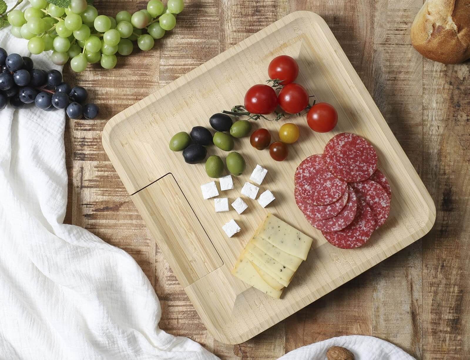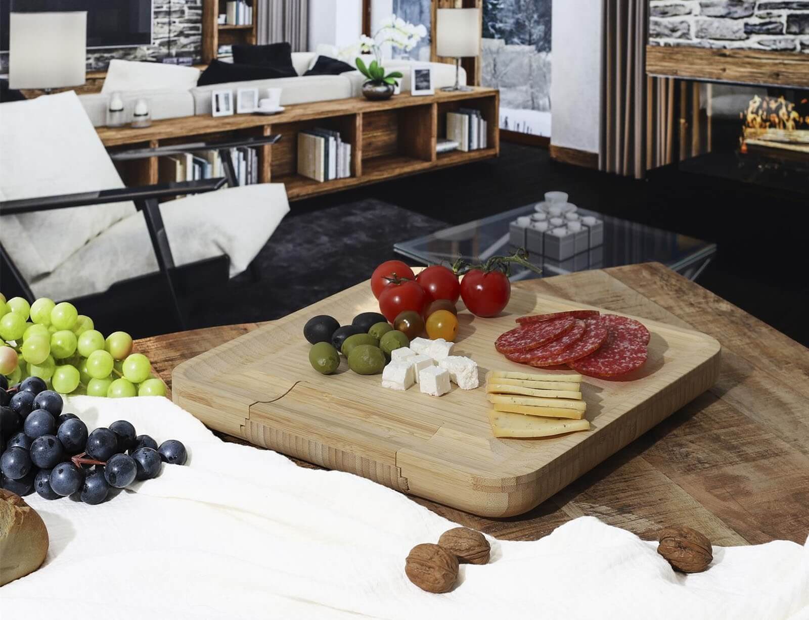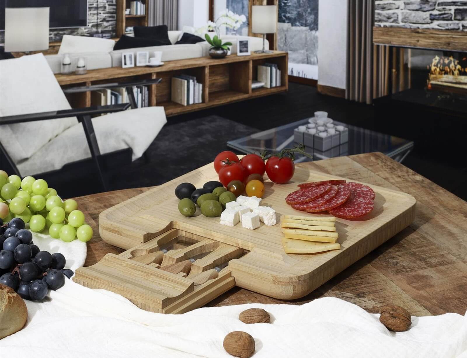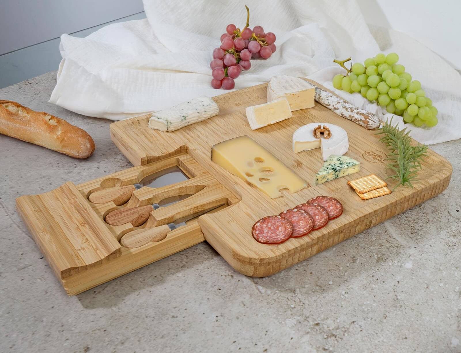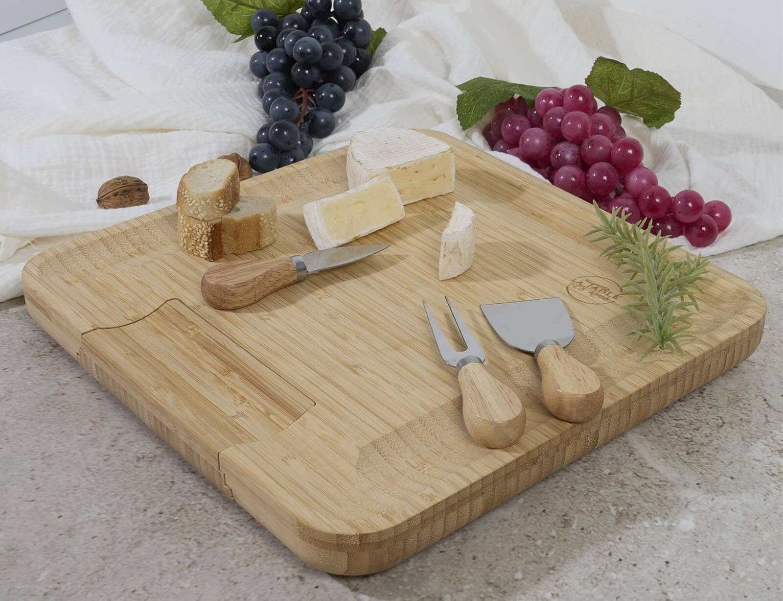 Πλατώ σερβιρίσματος τυριών Cook Concept με 3 μαχαίρια τυριού, συρτάρι αποθήκευσης και διαστάσεις 33x33x3cm