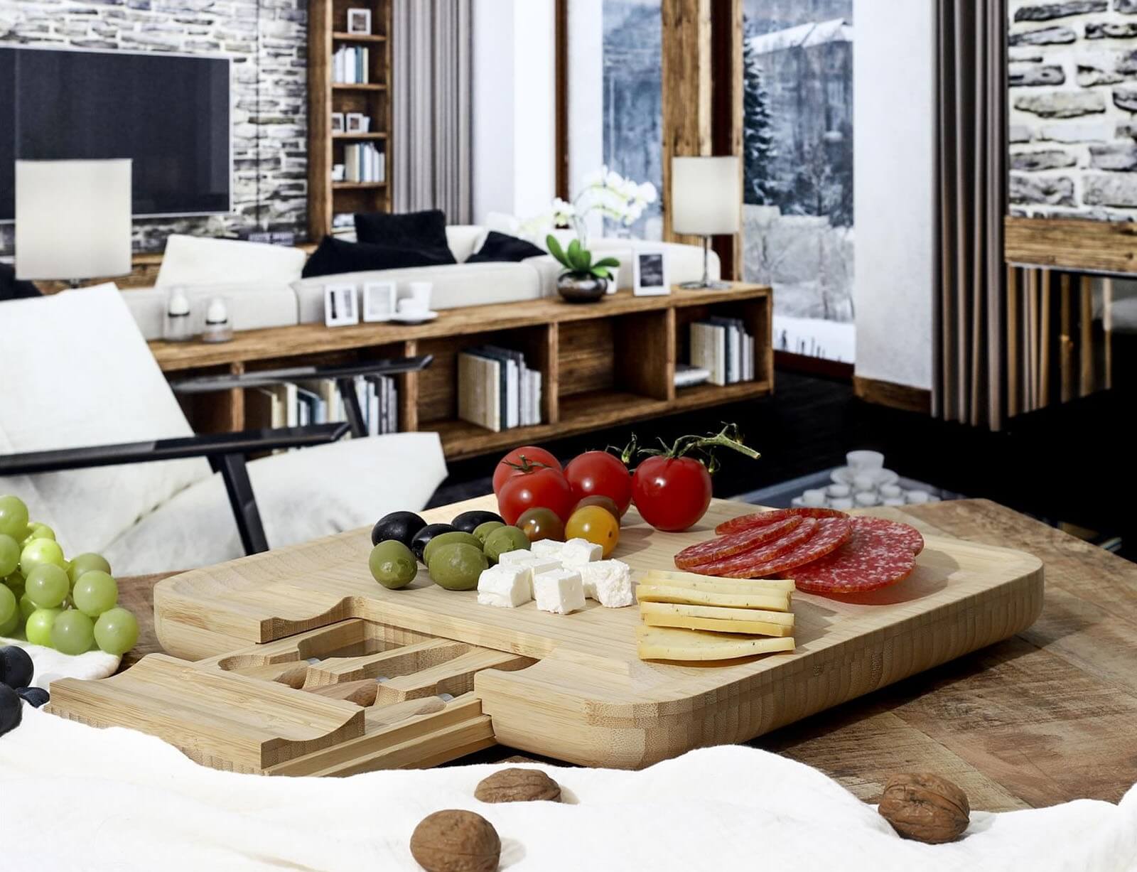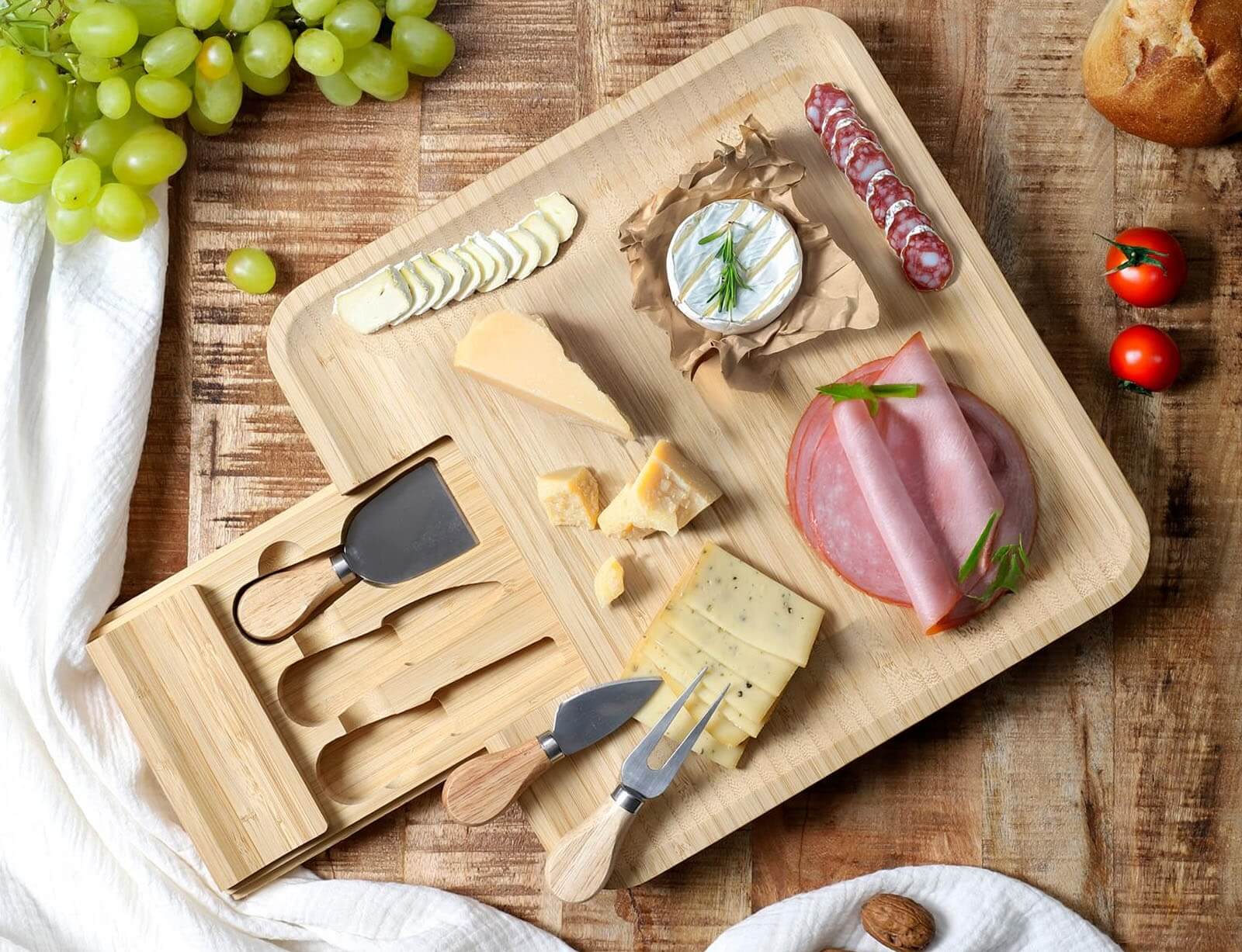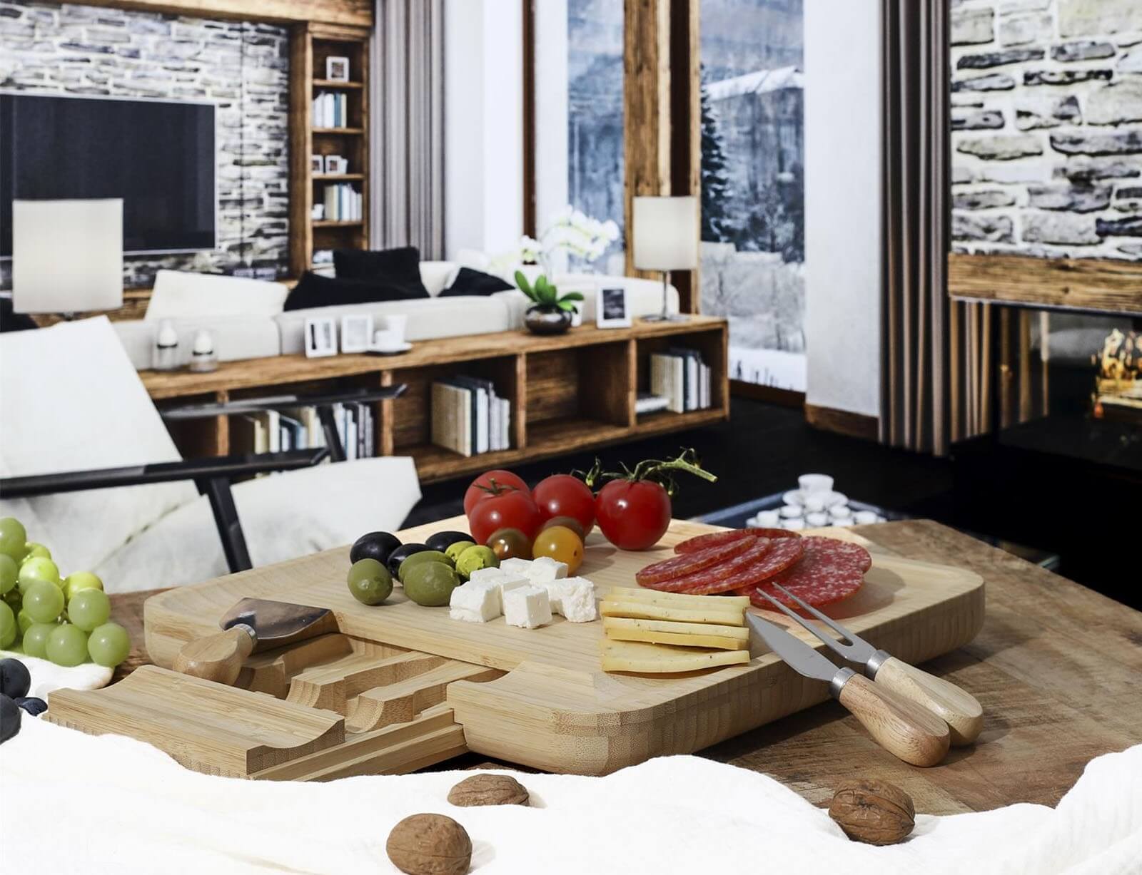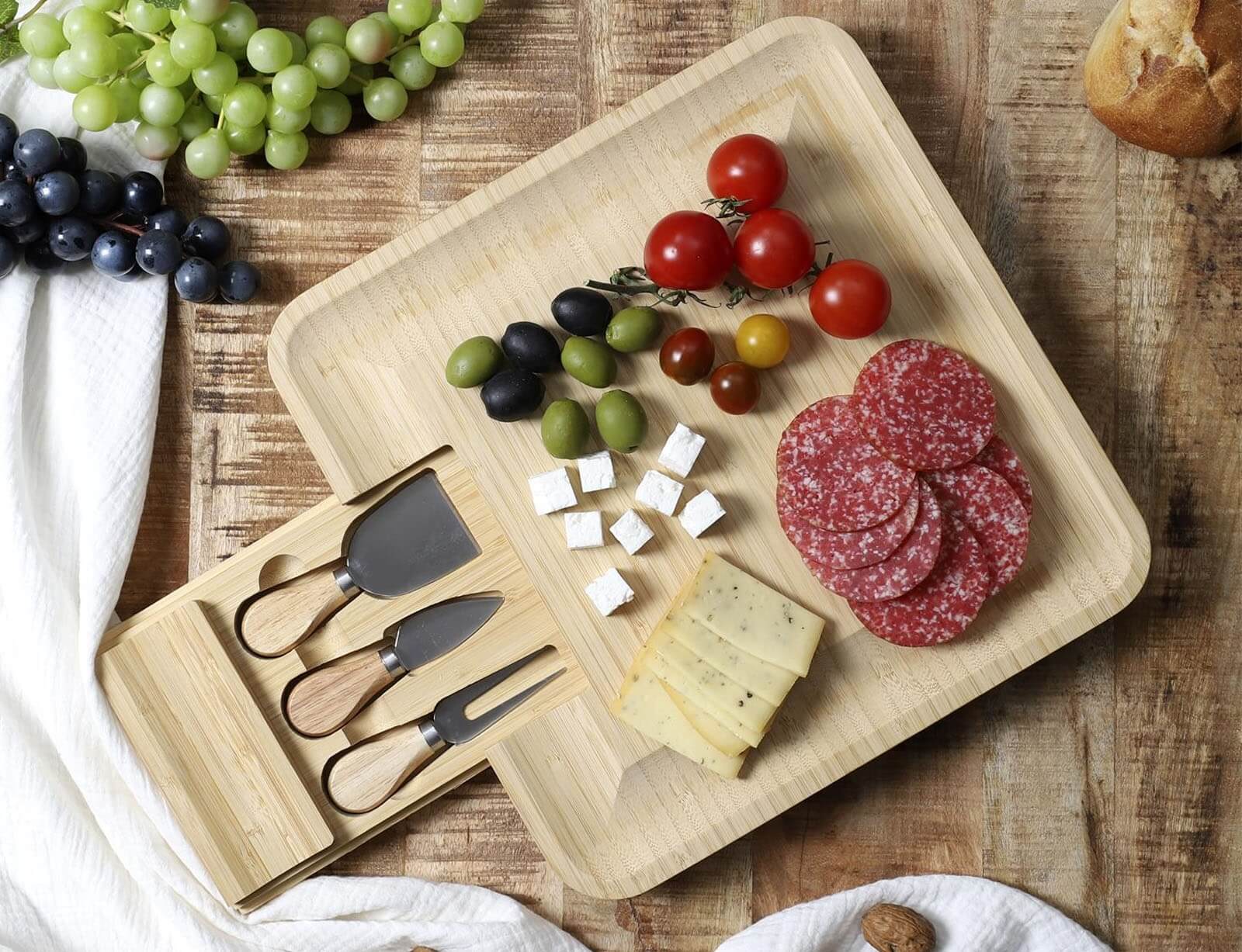 Πλατώ σερβιρίσματος τυριών Cook Concept με 3 μαχαίρια τυριού, συρτάρι αποθήκευσης και διαστάσεις 33x33x3cm