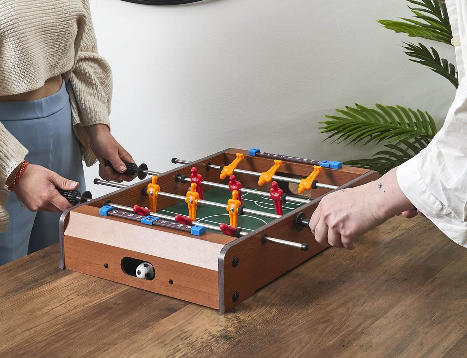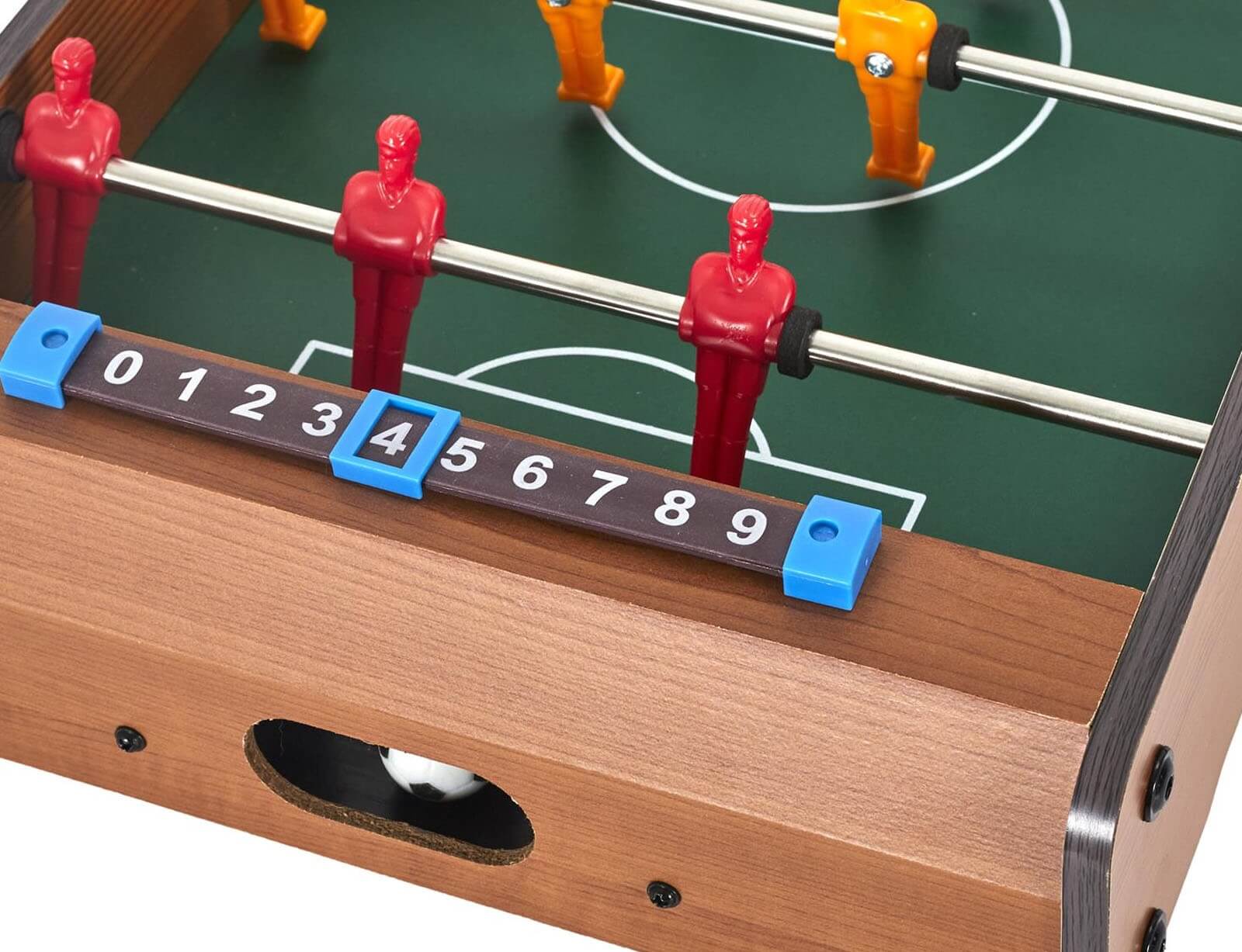 Ζήσε τη δράση του ποδοσφαίρου στο σπίτι σου! Το επιτραπέζιο ποδοσφαιράκι της Mister Gadget είναι ιδανικό για γρήγορες, διασκεδαστικές αναμετρήσεις με φίλους ή οικογένεια. Διαθέτει 12 παίκτες (6 σε κάθε πλευρά) και μεταλλικές ράβδους με μαλακά μαξιλάρια στα άκρα για να αποφευχθεί ζημιά στις φιγούρες. Κάθε λαβή έχει ένα ειδικά διαμορφωμένο κάλυμμα από καουτσούκ, το οποίο εγγυάται σταθερή πρόσφυση. Πίσω από κάθε τέρμα υπάρχουν πίνακες καταγραφής τερμάτων, ώστε να μη χρειάζεται να απομνημονεύετε το σκορ.