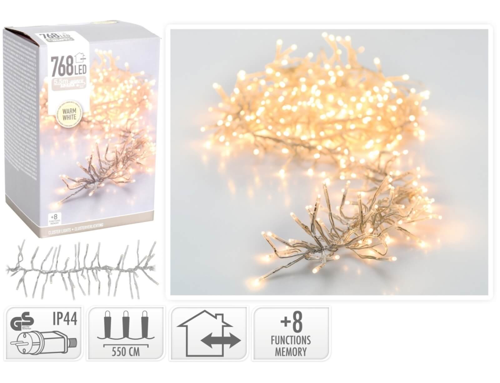 768 Φωτάκια LED - 5.6 Μέτρα + 3 Μέτρα σύνδεσης, Κανονική Διάταξη, με χειριστήριο, 8 προγράμματα, Διάφανο καλώδιο PVC - Θερμό Λευκό
