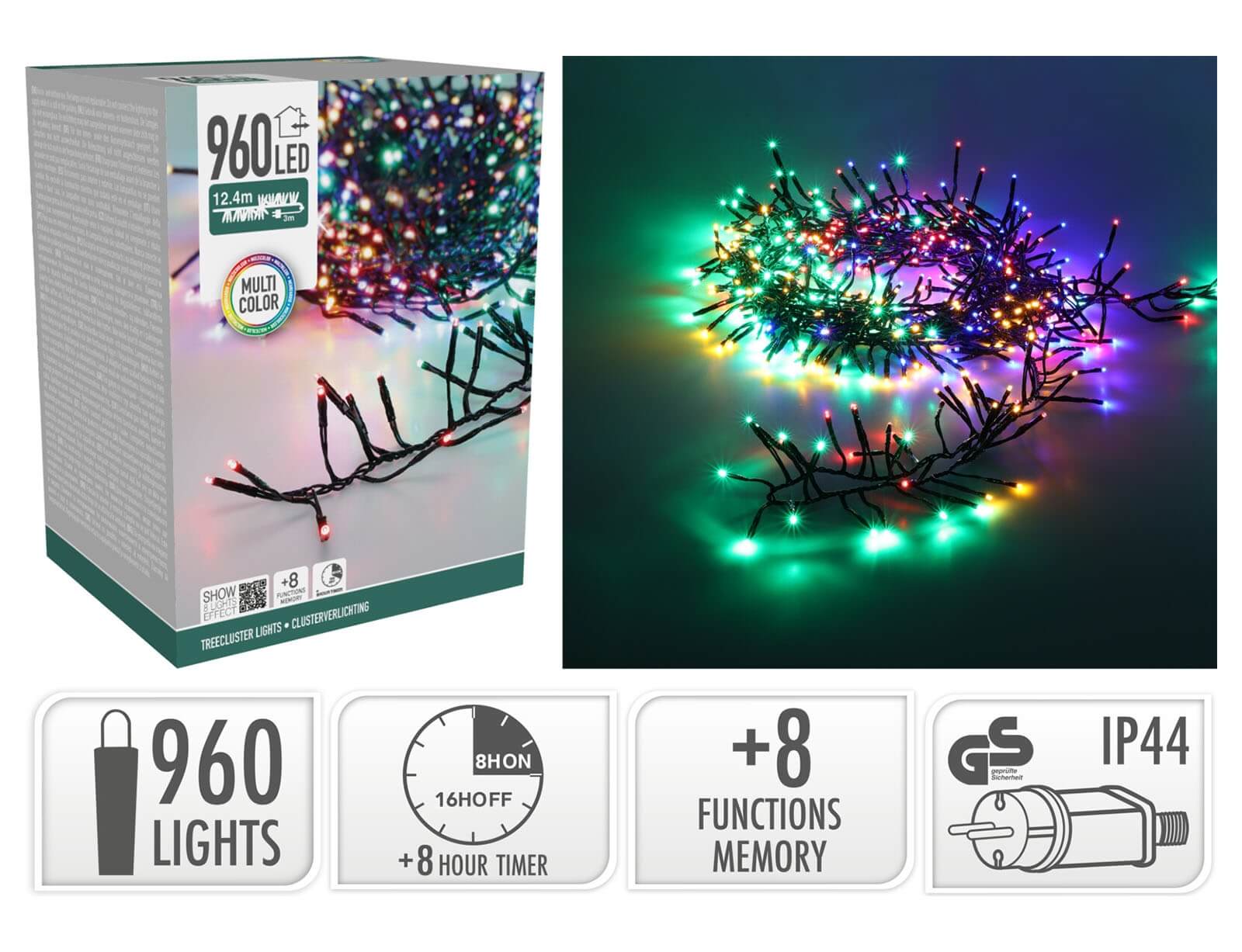 960 Φωτάκια LED - 12.4 Μέτρα + 3 Μέτρα σύνδεσης, Κανονική Διάταξη, με χειριστήριο, 8 προγράμματα, Πράσινο καλώδιο PVC - Πολύχρωμο