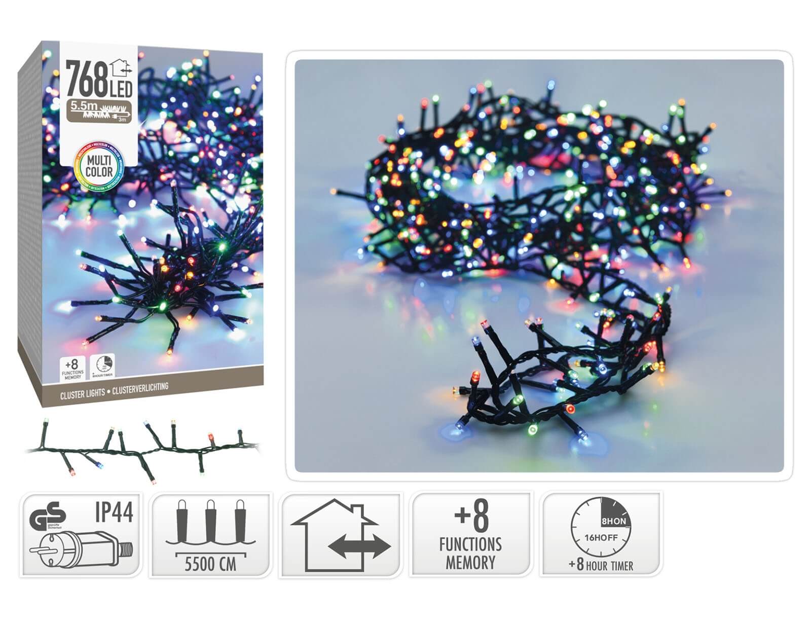 768 Φωτάκια LED - 5.6 Μέτρα + 3 Μέτρα σύνδεσης, Κανονική Διάταξη, με χειριστήριο, 8 προγράμματα, Μαύρο καλώδιο PVC - Πολύχρωμο