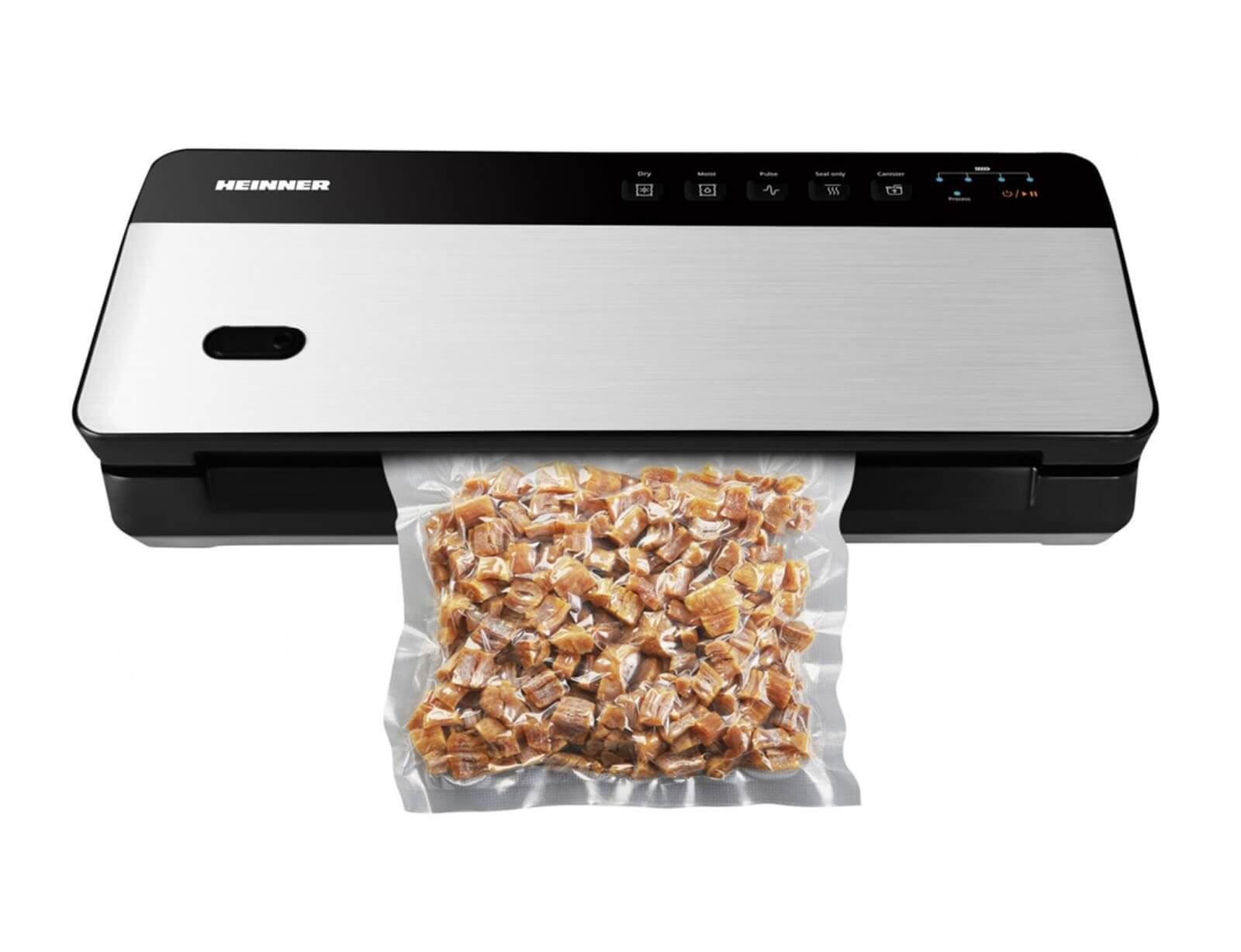 Συσκευή αεροστεγούς σφραγίσματος τροφίμων Heinner HAV-CRD80SS υγρής και ξηρής αναρρόφησης, με ισχύ 80W