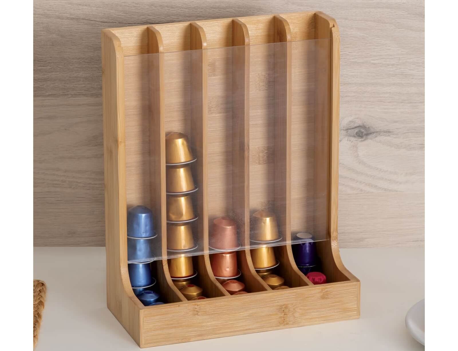 Τακτοποιήστε την κουζίνα σας και οργανώστε τις κάψουλες καφέ με το συρτάρι αποθήκευσης από την εταιρεία 5five. Είναι κατασκευασμένο από ξύλο μπαμπού, ένα ανθεκτικό υλικό με αντοχή στο χρόνο και έχει χωρητικότητα μέχρι και 70 κάψουλες.