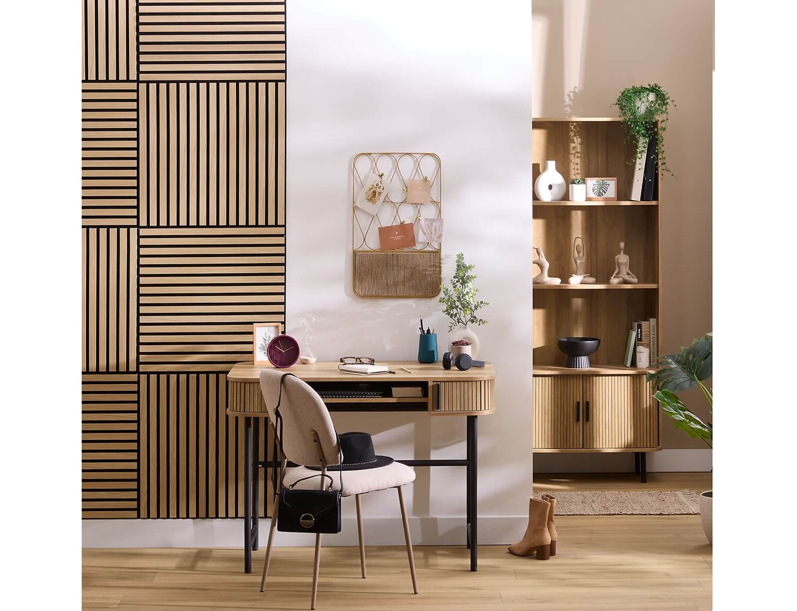 Ανανεώστε το χώρο σας με το 3d πάνελ τοίχου Colva από την Atmosphera. Χάρη στο μοναδικό του σχεδιασμό, το πάνελ προσδίδει μια αίσθηση φυσικότητας, ενώ η τρισδιάστατη δομή του τραβάει τα βλέμματα και δίνει χαρακτήρα σε κάθε τοίχο. Κατασκευασμένο από υψηλής ποιότητας υλικά, το συγκεκριμένο πάνελ προσφέρει ρεαλιστική υφή ξύλου και βάθος, δημιουργώντας μια ζωντανή και ζεστή ατμόσφαιρα στον χώρο σας. Είναι εύκολο στην εγκατάσταση αφού μπορεί να τοποθετηθεί είτε με κόλλα είτε με βίδες. Προσφέρει μερική ηχομόνωση στο χώρο, λόγω της τσόχας που είναι τοποθετημένη στο πίσω μέρος και μπορεί να κοπεί εύκολα.