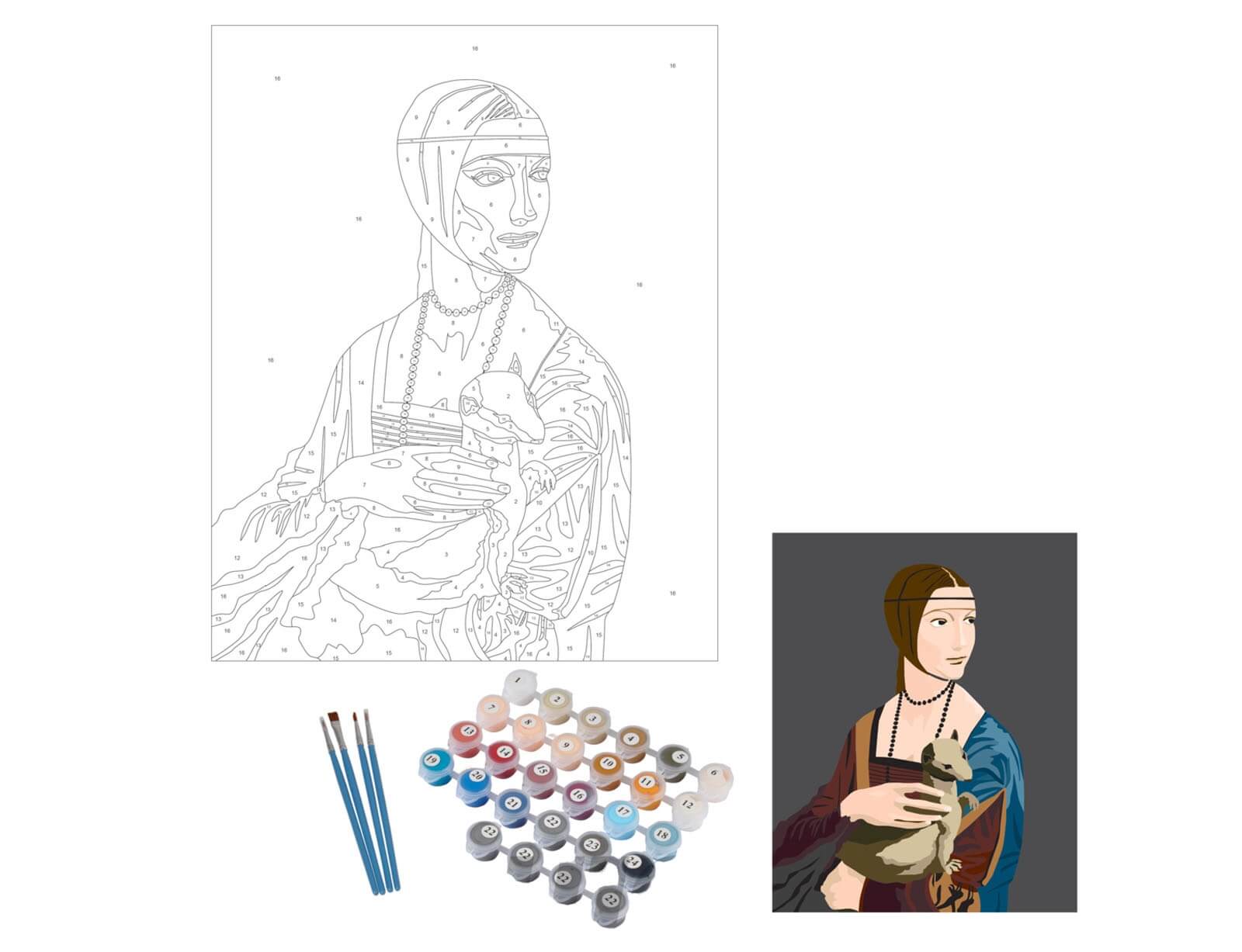 Σετ Ζωγραφικής με αριθμούς The Lady with an Ermine Seurat με διαστάσεις 40x50cm - Περιλαμβάνονται χρώματα και πινέλα