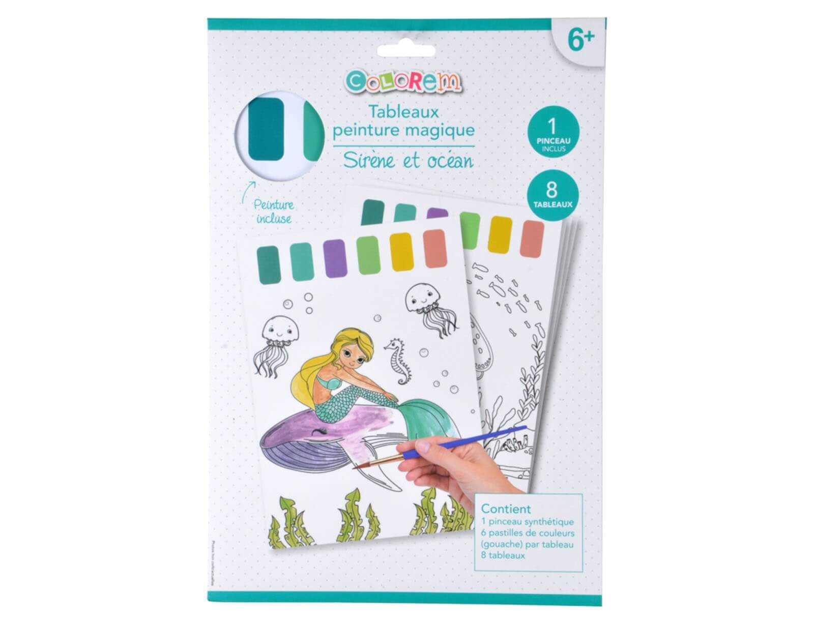 Το σετ ζωγραφικής από την Colorem είναι ένα σετ γεμάτο μαγεία και διασκέδαση, φτιαγμένο για παιδιά που λατρεύουν τη ζωγραφική και θέλουν να ανακαλύψουν την τέχνη με τον πιο διασκεδαστικό τρόπο! Το σετ ενισχύει τη φαντασία και τη δημιουργικότητα, καλλιεργεί τη λεπτή κινητικότητα και μαθαίνει στα παιδιά να εκφράζονται καλλιτεχνικά. Το μυστικό βρίσκεται στην ειδική τεχνική χρωματισμού: κάθε πίνακας έχει προ-εφαρμοσμένα χρώματα σε μορφή gouache, «κρυμμένα» μέχρι να ενεργοποιηθούν με το πινέλο και λίγο νερό. Απλά βρέξε το πινέλο, πέρασέ το στις περιοχές του πίνακα και δες τις γοργόνες, τα ψαράκια και το βυθό να γεμίζουν ζωντανά χρώματα μπροστά στα μάτια σου!