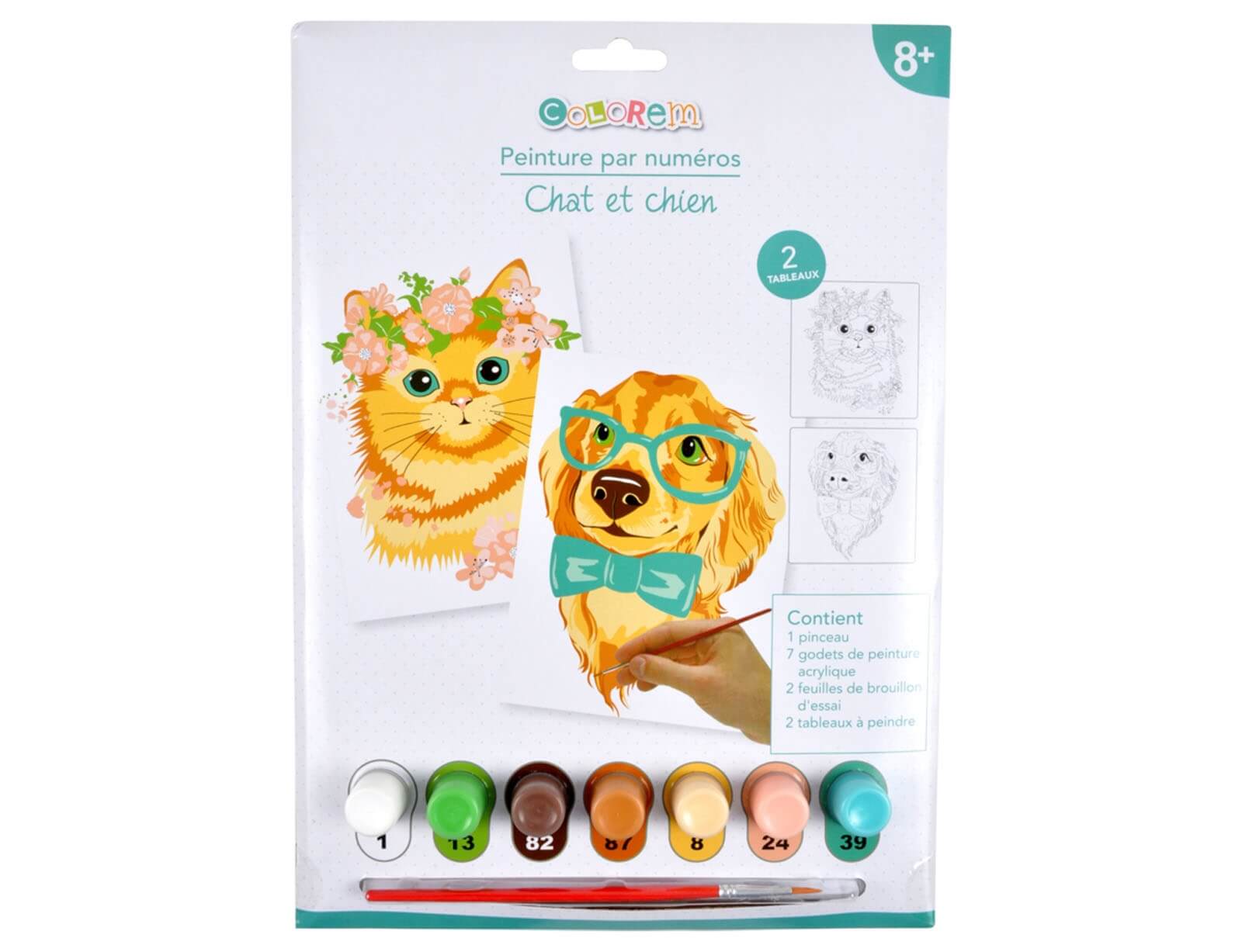 Σετ Ζωγραφικής με αριθμούς Γάτα & Σκύλος Colorem - Ηλικίες 8 ετών και άνω - Περιλαμβάνονται χρώματα και πινέλα