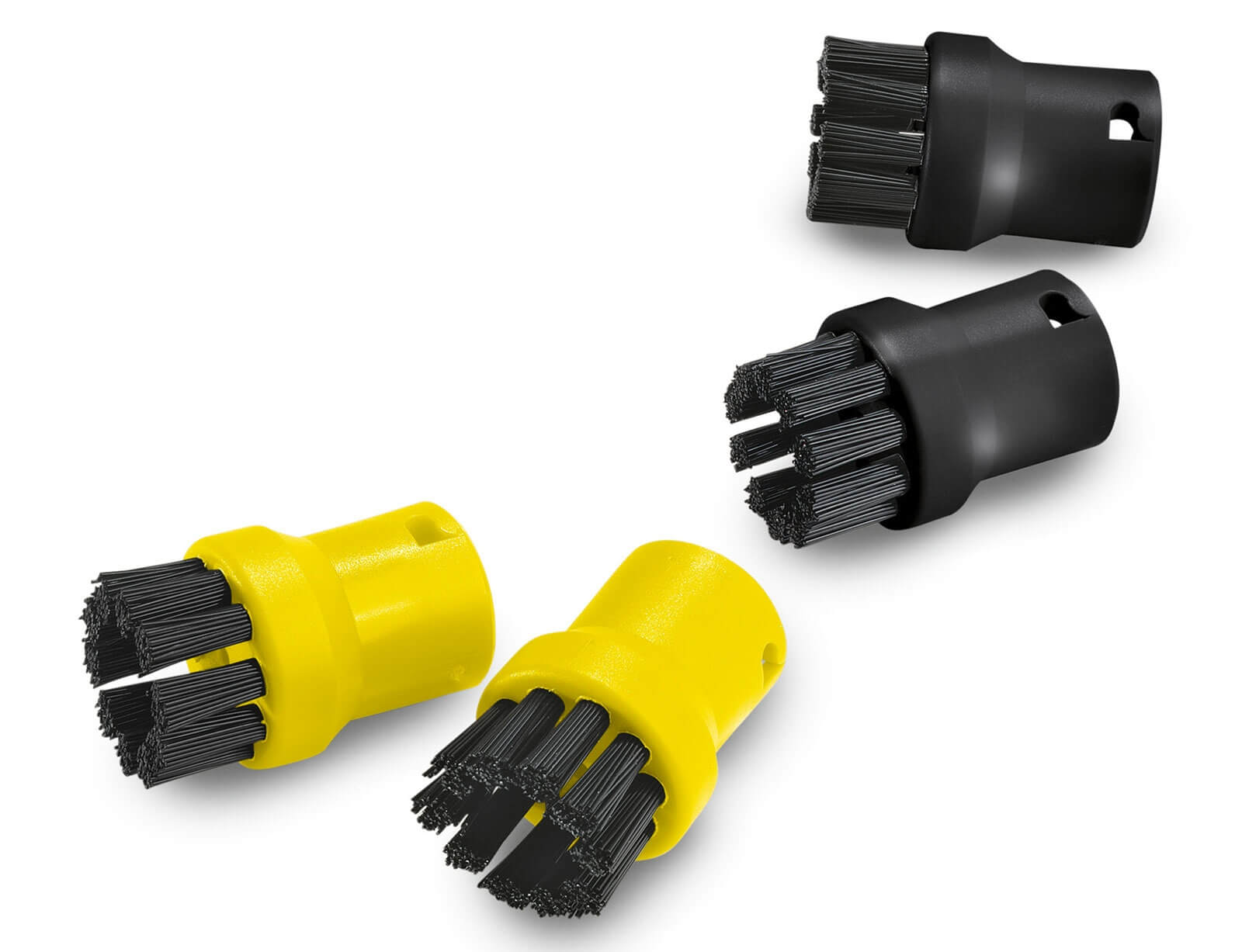 Το σετ στρογγυλής βούρτσας περιλαμβάνει δύο μαύρες και δύο κίτρινες στρογγυλές βούρτσες. Ιδανικό για χρήση σε διάφορους χώρους. Για παράδειγμα, το ένα χρώμα μπορεί να χρησιμοποιηθεί για εργασίες καθαρισμού στο μπάνιο και το άλλο στην κουζίνα. Οι εύκαμπτες τρίχες της βούρτσας ατμού φέρνουν εις πέρας αξιόπιστα και ξεκούραστα σχεδόν όλες τις εργασίες.