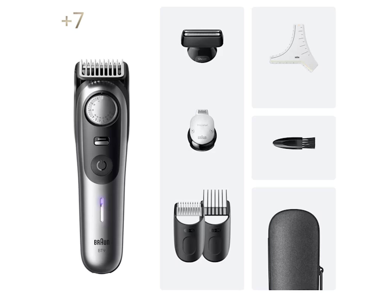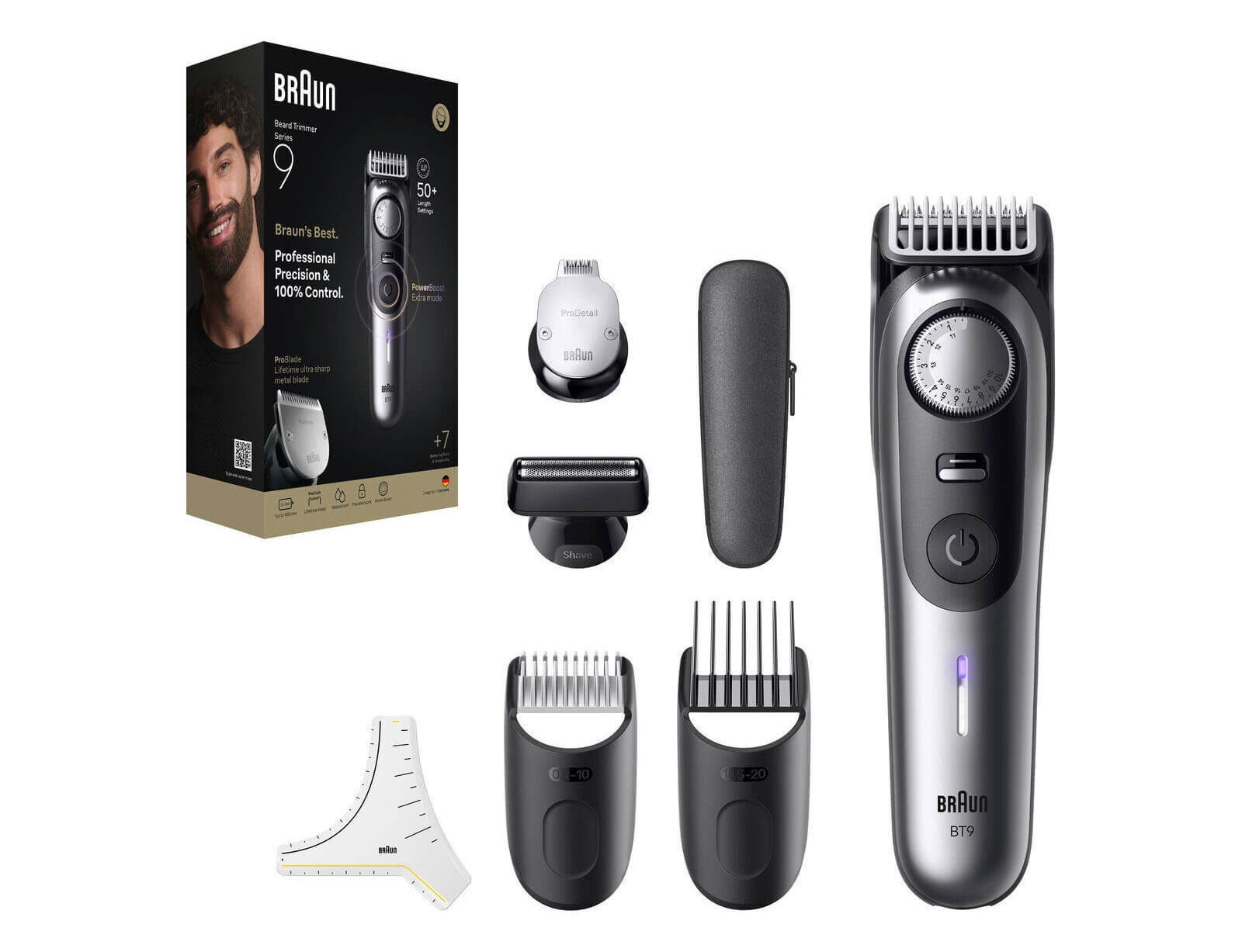Το καλύτερο τρίμερ γενειάδας της Braun, Σειρά 9, σας επιτρέπει να τριμάρετε, να ξυρίζετε, να κόβετε τις άκρες και να τις αφήνετε να φαίνονται πιο λεπτομερείς με κορυφαία εργαλεία κουρέματος για τέλειες γραμμές, ομαλά ξεθωριάσματα και ομοιόμορφα φινιρίσματα.