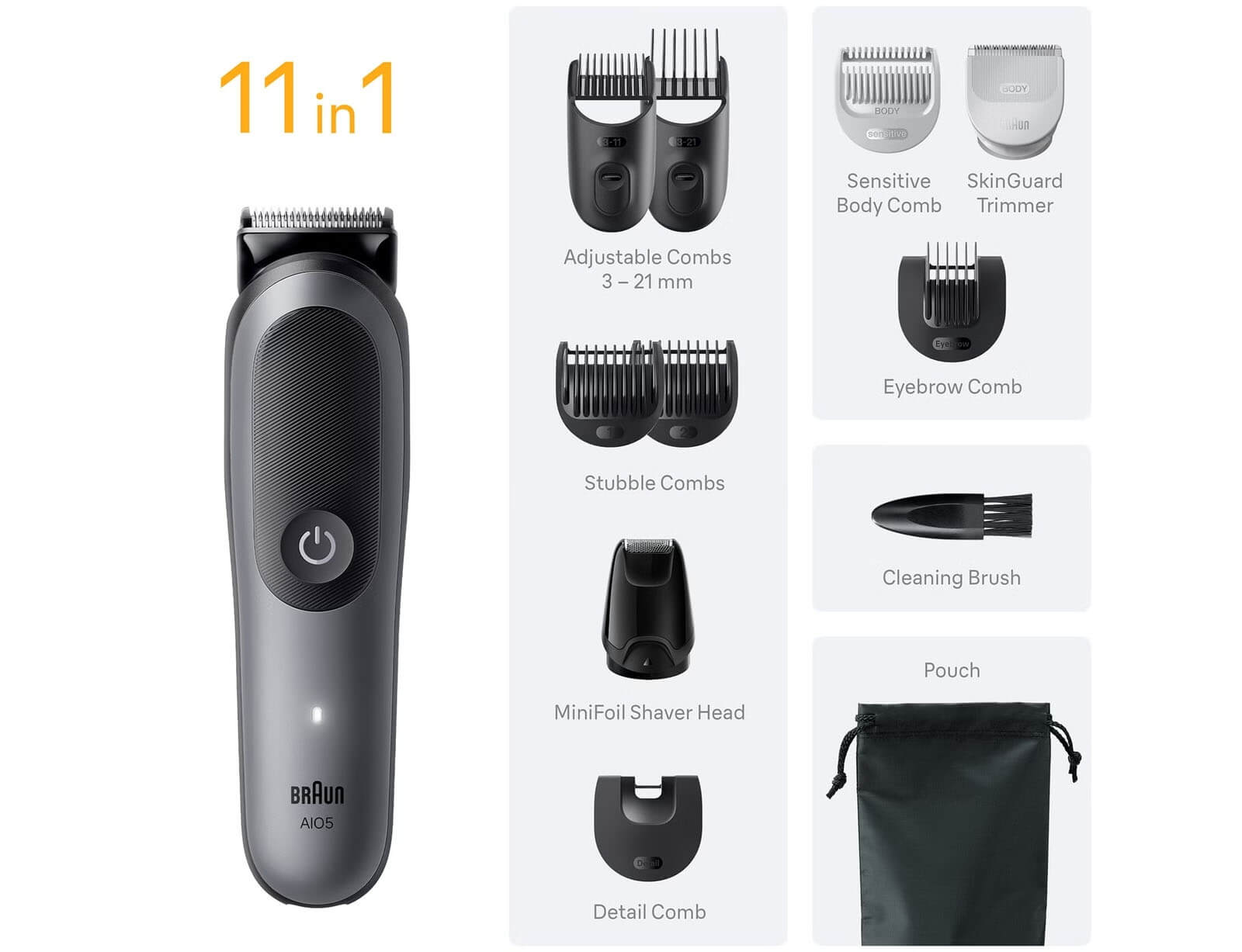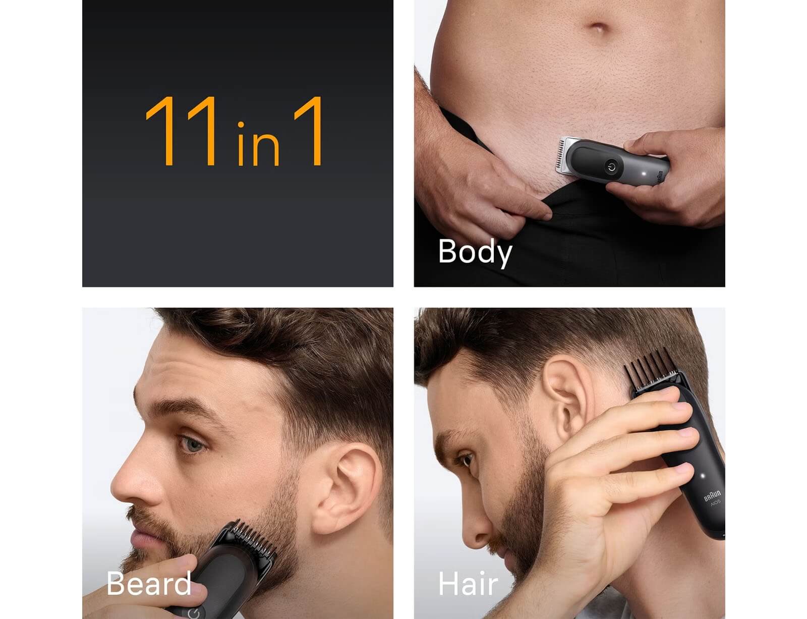 Αποκτήστε τον πλήρη έλεγχο της προσωπικής σας φροντίδας με το Braun 11 in 1 Kit. Το απόλυτο πολυεργαλείο περιποίησης που συνδυάζει κούρεμα, τριμάρισμα γενειάδας και περιποίηση σώματος, προσφέροντας επαγγελματικά αποτελέσματα με άνεση και ασφάλεια.