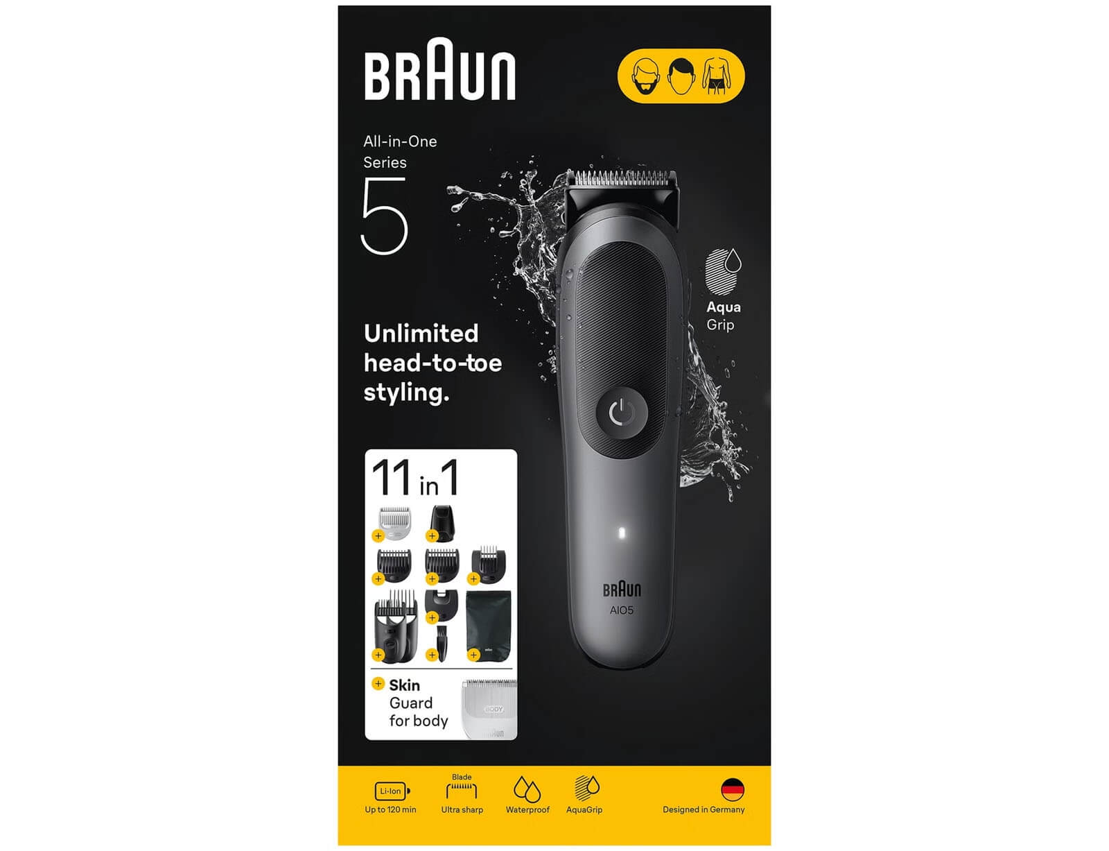 Σετ Ανδρικής Περιποίησης 11 σε 1 Braun Series 5 AIO5560 με 11 εξαρτήματα και 14 ρυθμίσεις κοπής