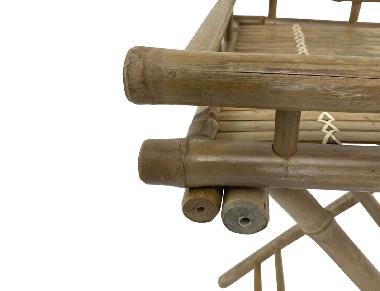 Ανανεώστε τον χώρο σας με αυτό το εντυπωσιακό βοηθητικό τραπεζάκι από τη Lesli Living φυσικό ξύλο μπαμπού, μια διαχρονική επιλογή που συνδυάζει κομψότητα, λειτουργικότητα και οικολογική συνείδηση. Διαθέτει ελαφριά αλλά σταθερή κατασκευή με σταυρωτά πόδια που εξασφαλίζουν ισορροπία και στήριξη. Η επιφάνειά του είναι περιμετρικά περιφραγμένη με κάγκελο από το ίδιο υλικό για επιπλέον ασφάλεια στη χρήση, αποτρέποντας την πτώση αντικειμένων και μπορεί να αφαιρεθεί και να χρησιμοποιηθεί ως δίκσος. Το τραπέζι είναι αναδιπλούμενο, γεγονός που το καθιστά εξαιρετικά πρακτικό για μεταφορά και αποθήκευση. Το φυσικό φινίρισμα του μπαμπού προσδίδει μια ζεστή, φυσική αισθητική, ενώ ταιριάζει απόλυτα σε χώρους με boho, ethnic ή νησιωτικό ύφος.