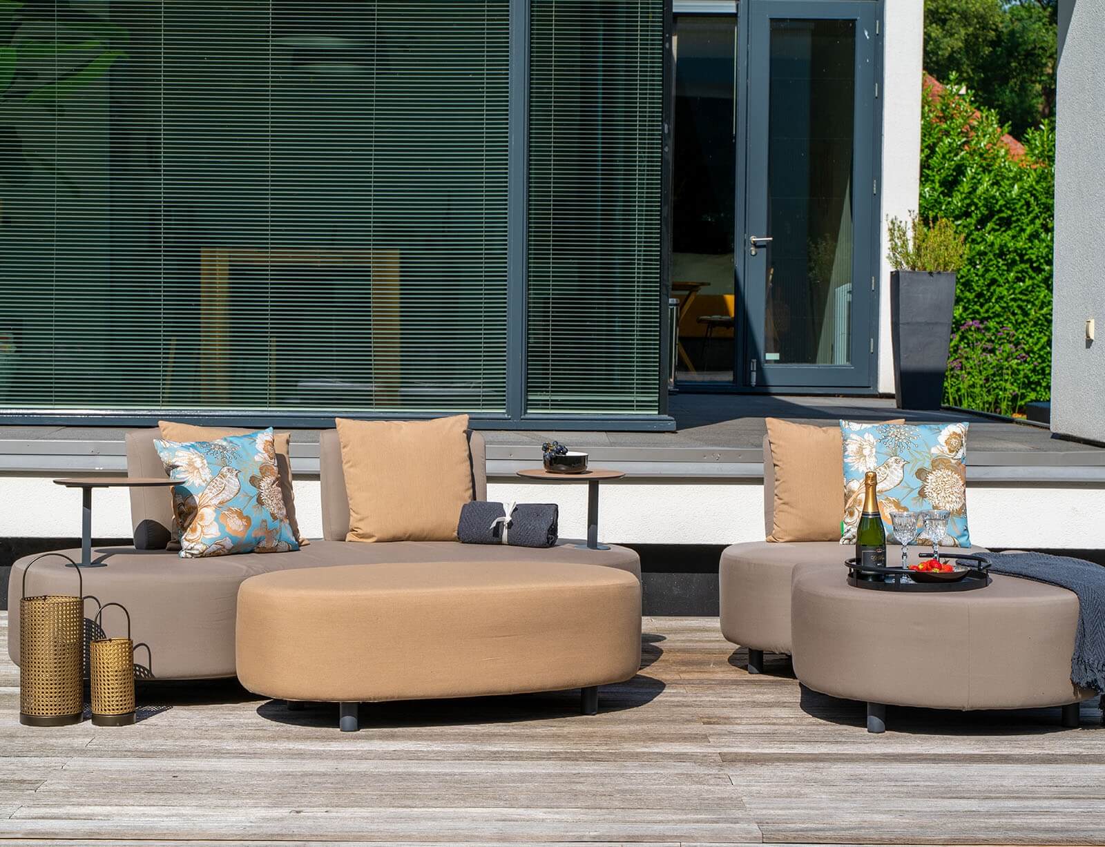 Σετ Σαλόνι Κήπου & Βεράντας Calidad Lesli Living με διθέσιο καναπέ, μονοθέσιο καναπέ, πολυθρόνα και σκαμπό, από Αλουμίνιο/Ύφασμα - Απόχρωση Καφέ