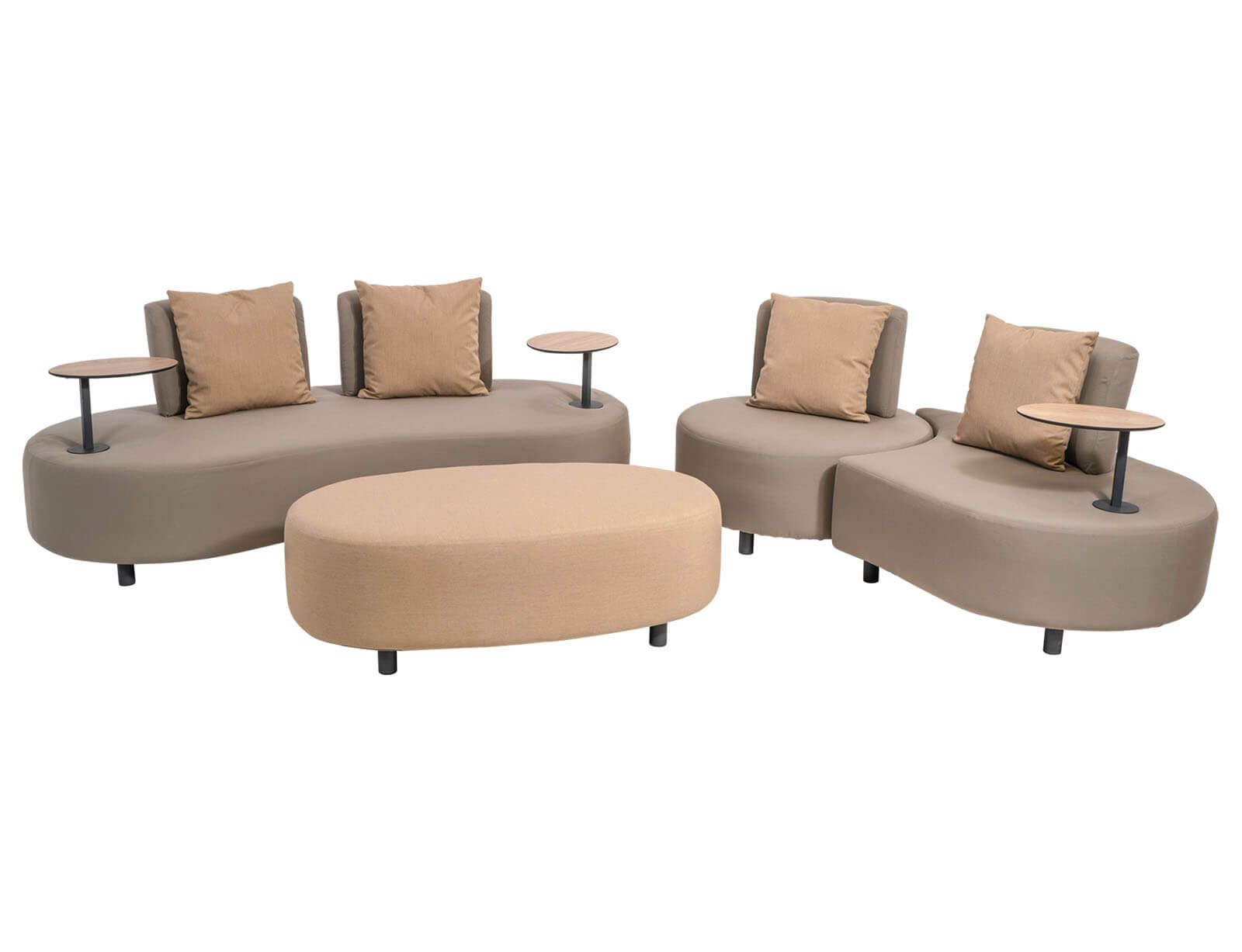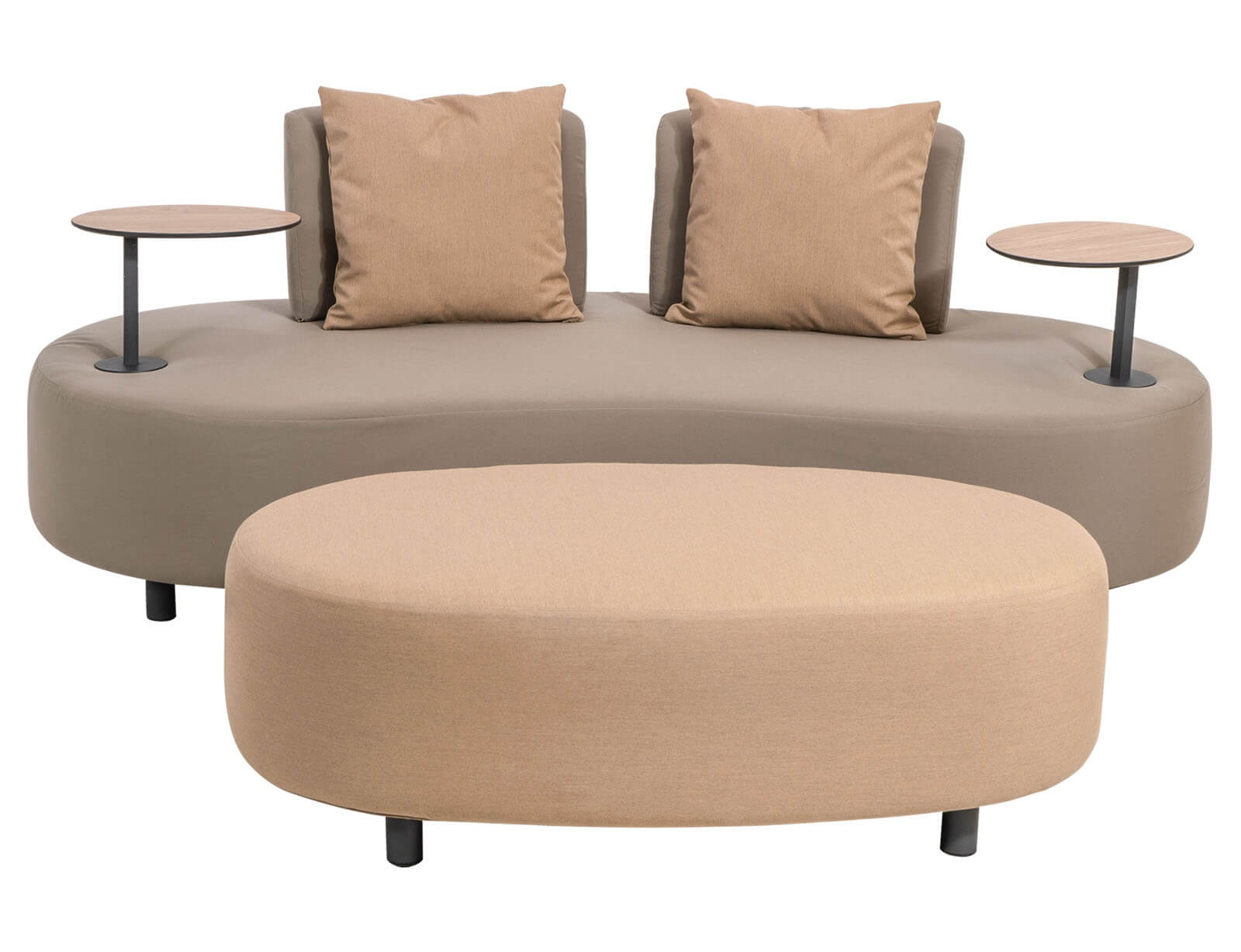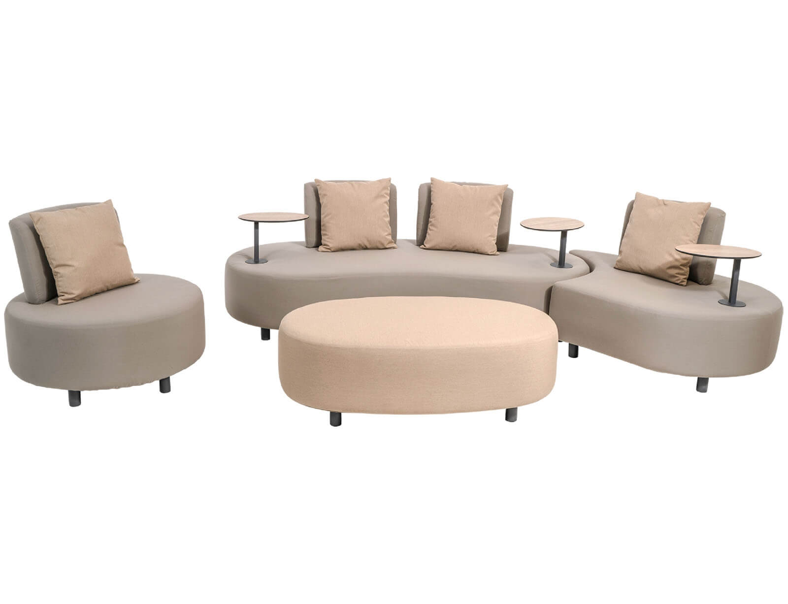 Αναβαθμίστε τον εξωτερικό σας χώρο με το κομψό και σύγχρονο lounge set Calidad. Με σκελετό από αλουμίνιο με ματ ανθρακί επίστρωση, το σετ αποπνέει διαχρονική αισθητική και μοντέρνο χαρακτήρα. Τα αναπαυτικά μαξιλάρια καθίσματος και πλάτης, καθώς και τα τέσσερα διακοσμητικά μαξιλάρια από ύφασμα Sunbrella® 260g/m² σε γήινες αποχρώσεις ταμπά/μπεζ, προσφέρουν άνεση και στυλ. Η γέμιση Quick Dry Foam επιτρέπει στο σετ να στεγνώνει γρήγορα, καθιστώντας το ιδανικό για χρήση σε κάθε εποχή. Με εργονομικό ύψος καθίσματος στα 420mm και κομψές οβάλ επιφάνειες τραπεζιών από HPL σε ανοιχτό καφέ, το Calidad προσφέρει τον ιδανικό χώρο για χαλάρωση, παρέα και απόλαυση στη φύση.