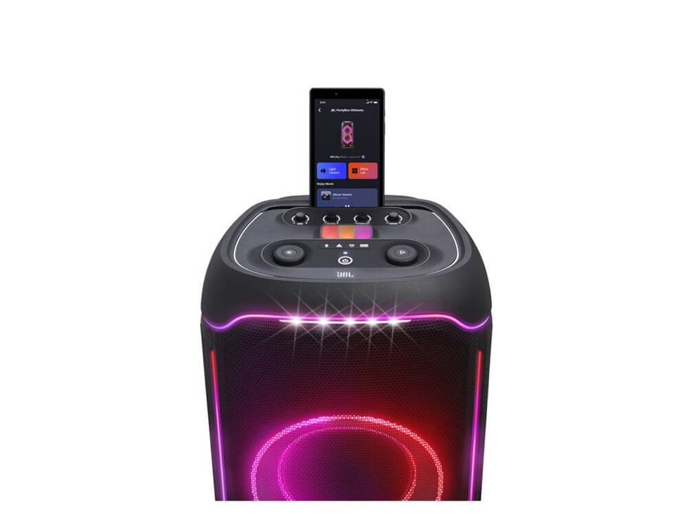Φώτα, χρώμα, πάρτι! Μεταμορφώστε τον χώρο σας σε μια μαγευτική, πλήρως αισθητηριακή εμπειρία με τη μεγαλύτερη πολυδιάστατη προβολή φωτός από οποιοδήποτε ηχείο πάρτι. Έχει ένα μοναδικό εφέ έναστρης νύχτας, δροσερά μονοπάτια φωτός, στροβοσκοπικά, ακόμη και φώτα που προβάλλουν σε οποιαδήποτε επιφάνεια κάθεται. Όλα συγχρονίζονται με τη μουσική σας και μπορούν να ελεγχθούν εύκολα μέσω των βελτιστοποιημένων, φιλικών προς το χρήστη επιλογών στον επάνω πίνακα ή μέσω της εφαρμογής JBL One.