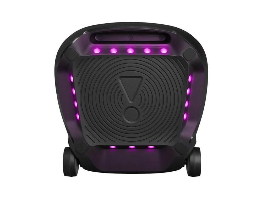 Απολαύστε το πάρτι με φαρδιές, στιβαρές ρόδες και μια εύκολη στο πιάσιμο λαβή που κάνει αυτό το μεγάλο ηχείο εκπληκτικά εύκολο στη μεταφορά. Μια απλή αλλά αποτελεσματική ρύθμιση διαχείρισης καλωδίων διασφαλίζει ότι τα καλώδια δεν μπαίνουν ποτέ στο δρόμο σας.