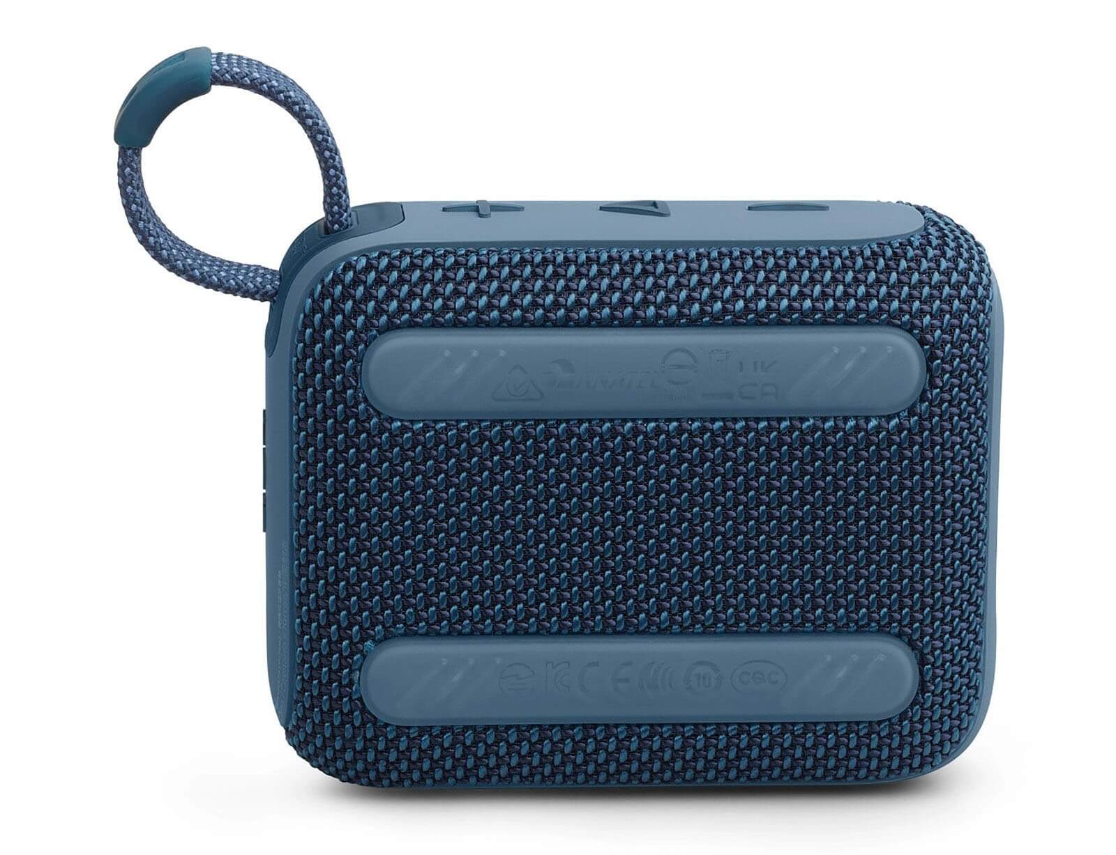 Το JBL Go 4 ενσωματώνει ανακυκλωμένο πλαστικό και ύφασμα μετά την κατανάλωση για τη μάσκα του ηχείου. Είναι επίσης συσκευασμένο σε χαρτί με πιστοποίηση FSC, τυπωμένο με μελάνι σόγιας.
