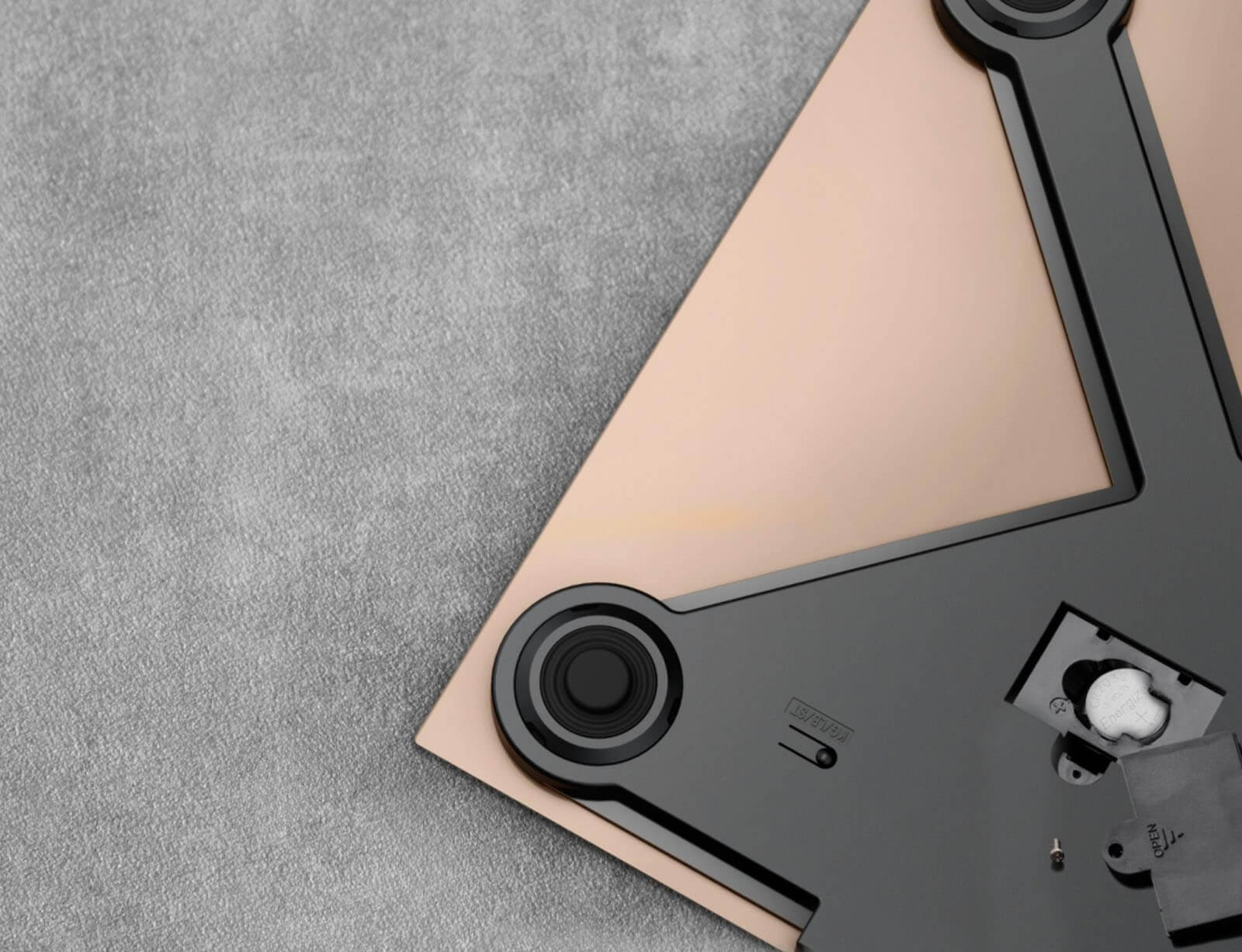 Ο εξαιρετικά λεπτός σχεδιασμός (22 mm) και η πολύ φαρδιά πλατφόρμα (30 x 30 cm) προσφέρουν μέγιστη άνεση και διακριτική αποθήκευση.