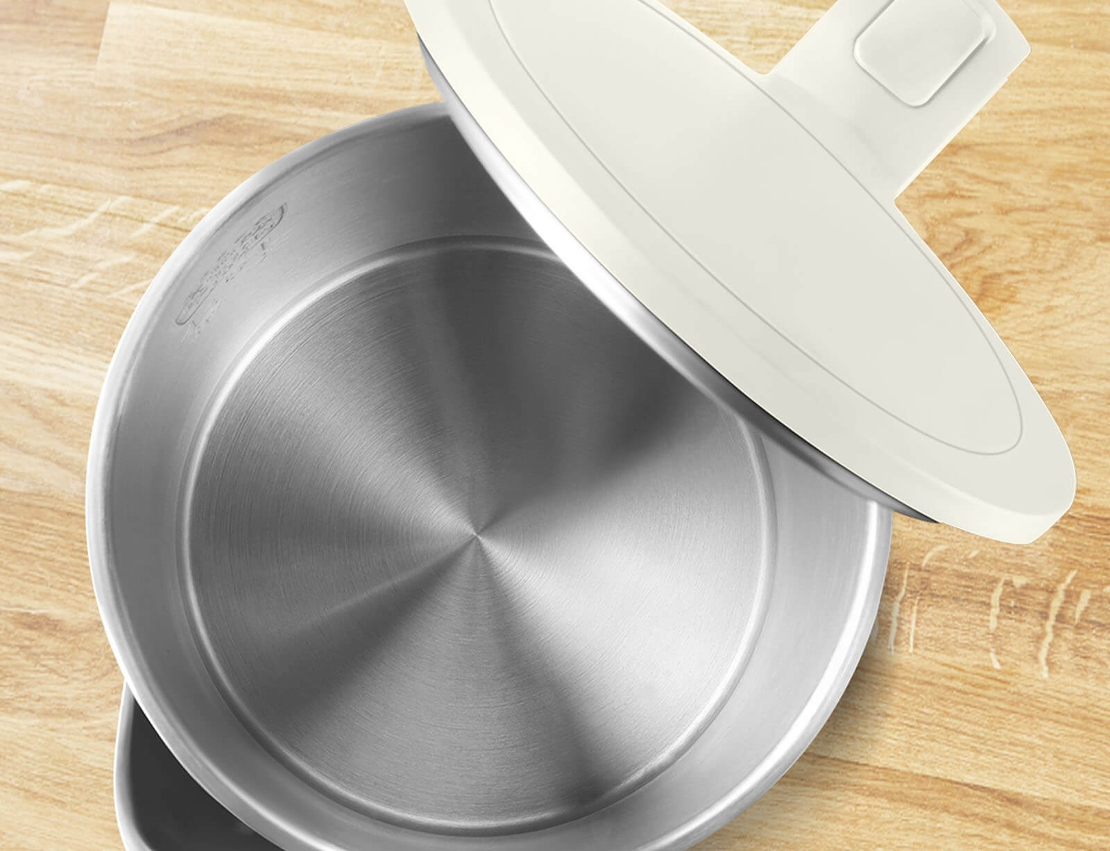 Το μεγάλο άνοιγμα του βραστήρα και το πλήρες εσωτερικό από ανοξείδωτο ατσάλι με κρυφό θερμαντικό στοιχείο κάνουν τον καθαρισμό εύκολο.