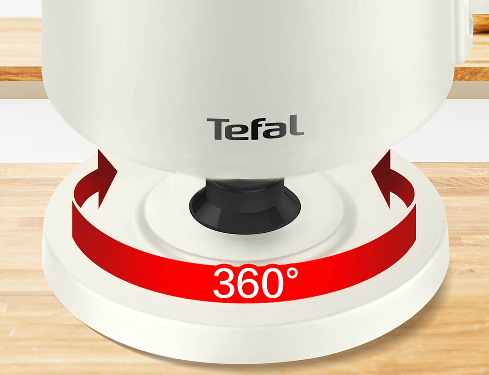 Χάρη στην περιστρεφόμενη βάση 360°, ο βραστήρας μπορεί εύκολα να σηκωθεί και να τοποθετηθεί από οποιαδήποτε γωνία.