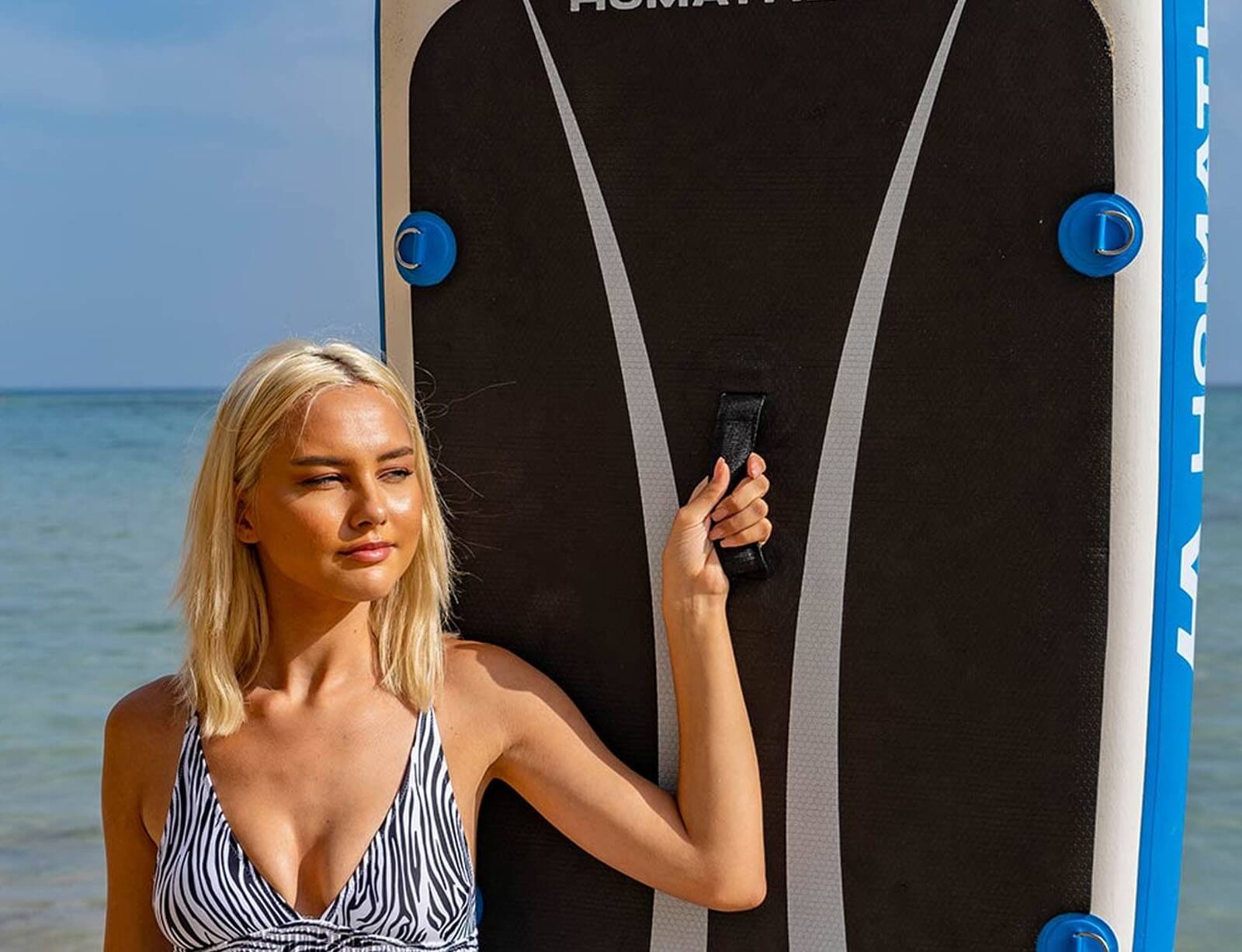 Απολαύστε την απόλυτη εμπειρία στο νερό με το σετ φουσκωτής σανίδας SUP Bahamas HomAthlon! Σχεδιασμένη με κορυφαία τεχνολογία Drop Stitch, η σανίδα προσφέρει εξαιρετική σταθερότητα και αντοχή, διατηρώντας το σχήμα της ακόμα και σε υψηλή πίεση. Η αντιολισθητική επιφάνεια εξασφαλίζει ασφαλές πάτημα, ενώ το αποσπώμενο πτερύγιο σας προσφέρουν ομαλή πλεύση και άριστο έλεγχο. Με πρακτική πρόσδεση φορτίου για τα προσωπικά σας αντικείμενα και βελτιωμένη βαλβίδα αέρα για εύκολο φούσκωμα, το σετ περιλαμβάνει επίσης κουπί, αντλία και τσάντα μεταφοράς, ώστε να έχετε μαζί σας όλα όσα χρειάζεστε για κάθε εξόρμηση.