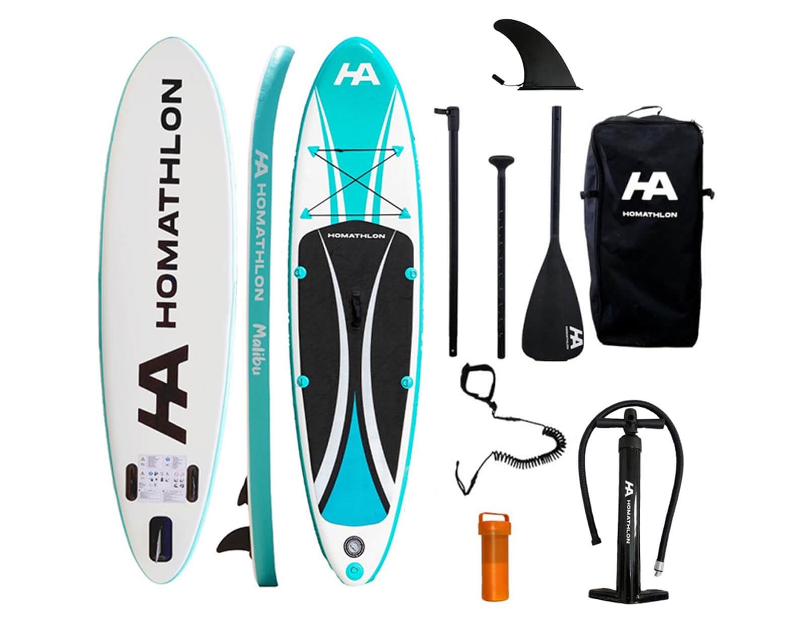 Σετ Φουσκωτή Σανίδα SUP Malibu HomAthlon με διαστάσεις 305x76x15cm - Περιλαμβάνονται κουπί, αντλία και τσάντα μεταφοράς
