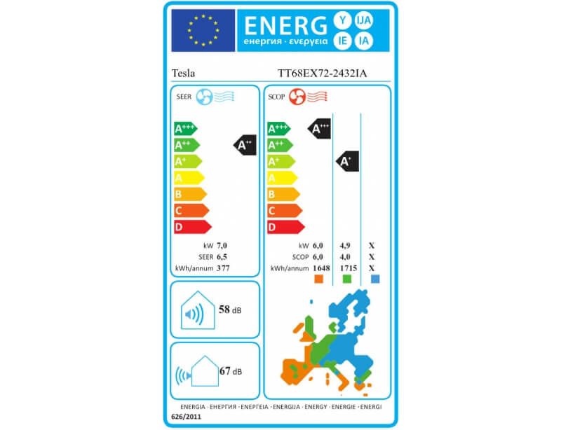 Κλιματιστικό Inverter Tesla TT68EX72-2432IA με απόδοση 24000 Btu και Ενεργειακή Κλάση A++/A+++