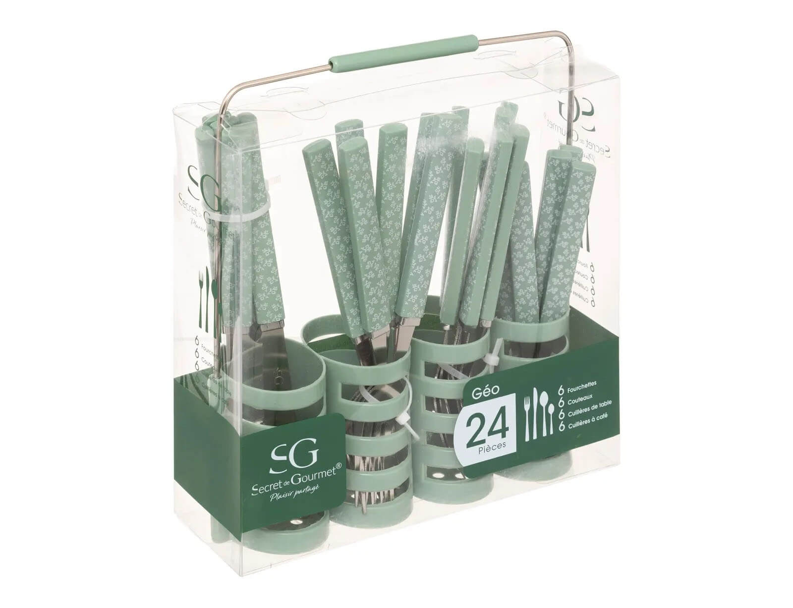 Σετ Μαχαιροπίρουνα Geo Secret de Gourmet με θήκη οργάνωσης - 24 τεμάχια - Green