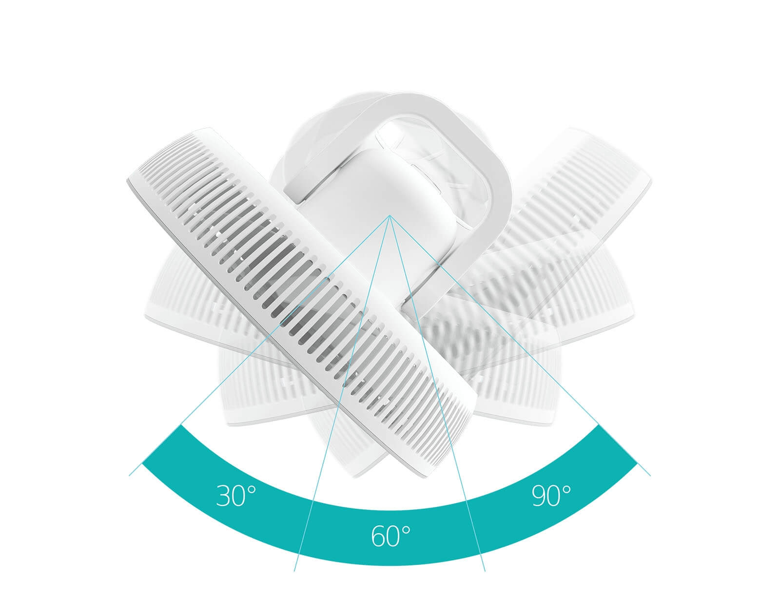 Επιλέξτε την ιδανική ροή αέρα χωρίς κόπο χάρη στις προκαθορισμένες επιλογές. Η κάθετη ταλάντωση είναι ρυθμιζόμενη στις 45° και 90°, ενώ η οριζόντια ταλάντωση μπορεί να ρυθμιστεί στις 30°, 60° ή 90°. Έτσι κατευθύνετε την ψύξη ακριβώς εκεί που τη χρειάζεστε.