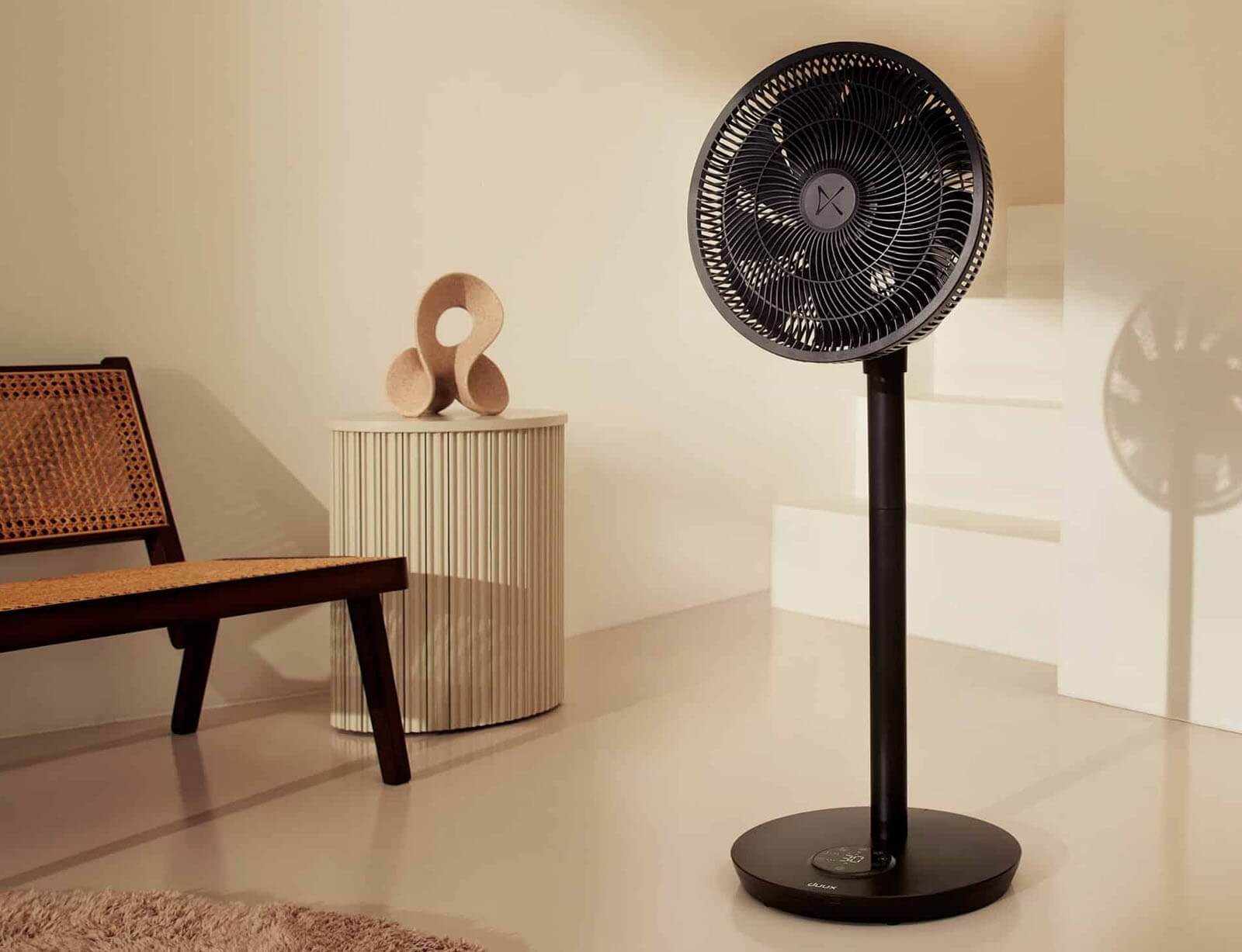 Η ανανεωμένη διεπαφή του Whisper Flex 2 προσφέρει διαισθητική λειτουργία. Η οθόνη LED με χειριστήρια αφής απενεργοποιείται αυτόματα και αθόρυβα τη νύχτα. Το βελτιωμένο τηλεχειριστήριο και το κομψό ματ φινίρισμα με διακριτικές γκρι ανοιχτές πινελιές στη γρίλια και τη βάση κάνουν αυτόν τον ανεμιστήρα να μαγνητίζει τα βλέμματα σε κάθε εσωτερικό χώρο.