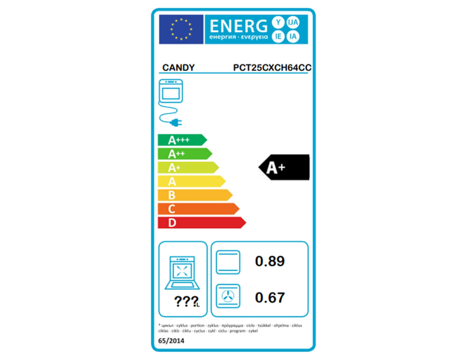 Σετ Εντοιχιζόμενος Φούρνος Candy PCT25CXCH64CC με χωρητικότητα 65L και ενεργειακή κλάση Α+ και Αυτόνομες κεραμικές εστίες Candy με 4 ζώνες μαγειρέματος