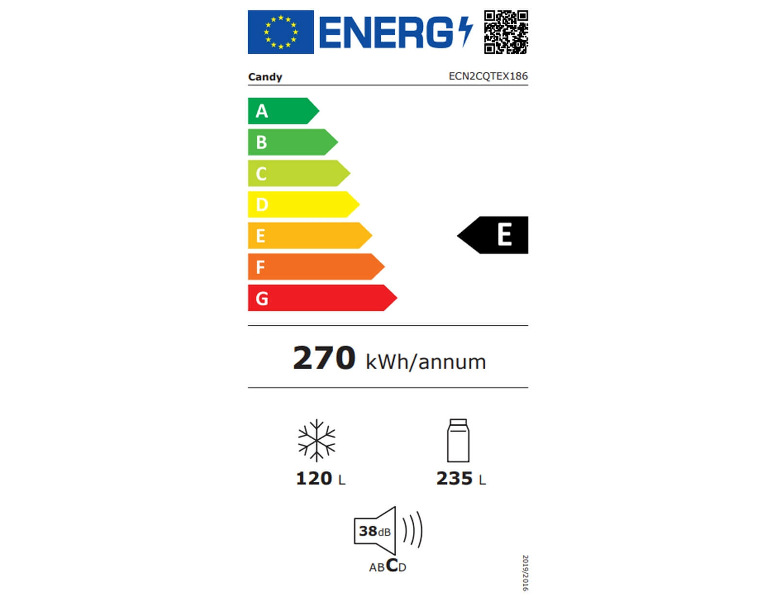 Ψυγειοκαταψύκτης Fresco 300 Candy ECN2CQTEX186 No Frost, με Συνολική Χωρητικότητα 355L, Ενεργειακή κλάση E και Ύψος 185cm