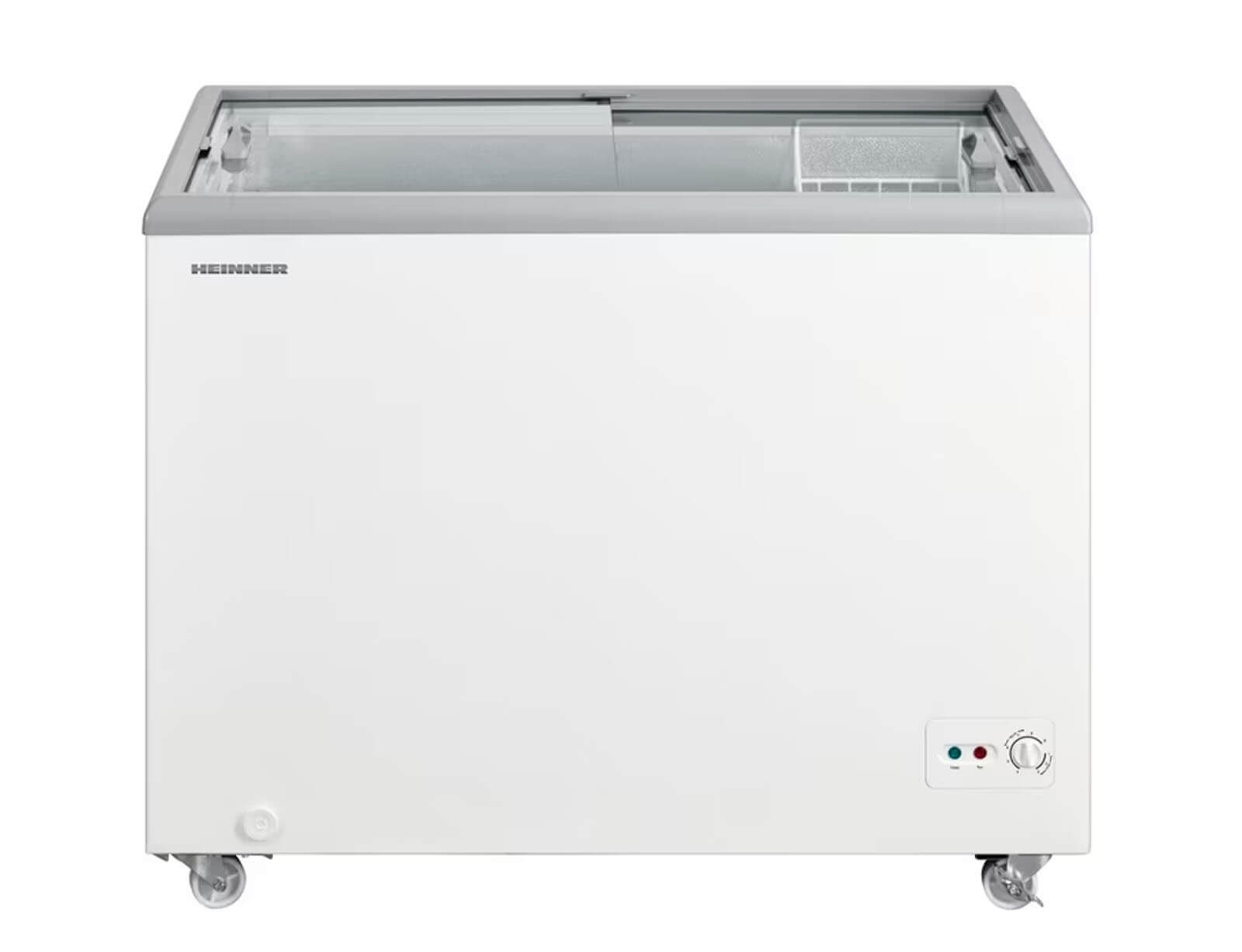 Καταψύκτης Μπαούλο Heinner HSF-M255WHC με συρόμενα τζάμια, χωρητικότητα 255L και ενεργειακή κλάση C